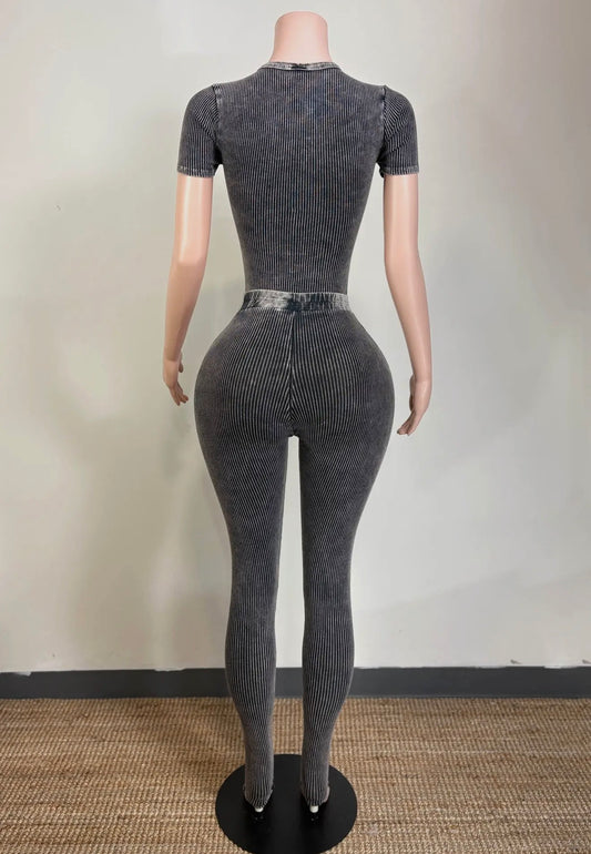 Contour Seam Ribbed Jumpsuit – Vintage Wash