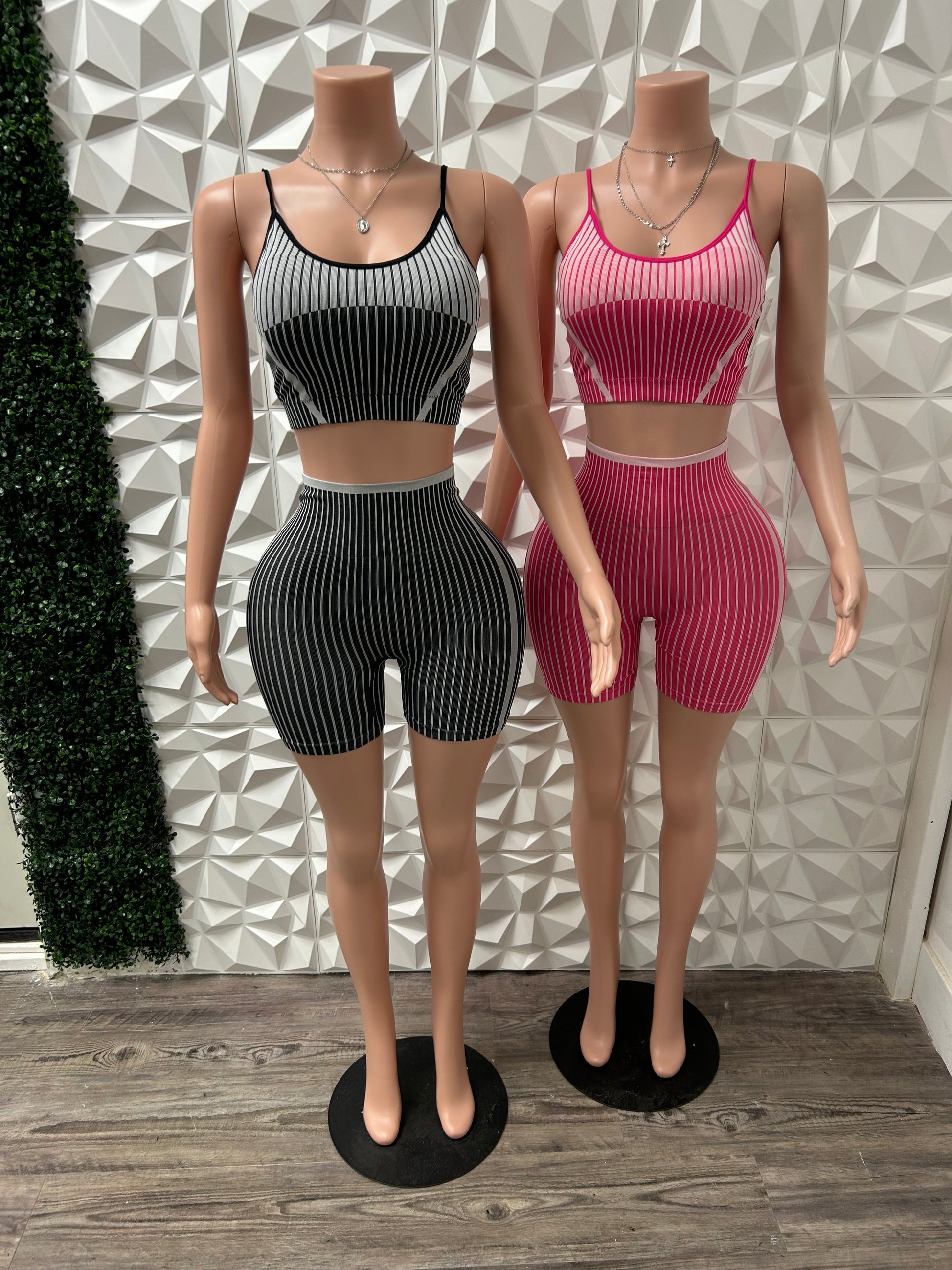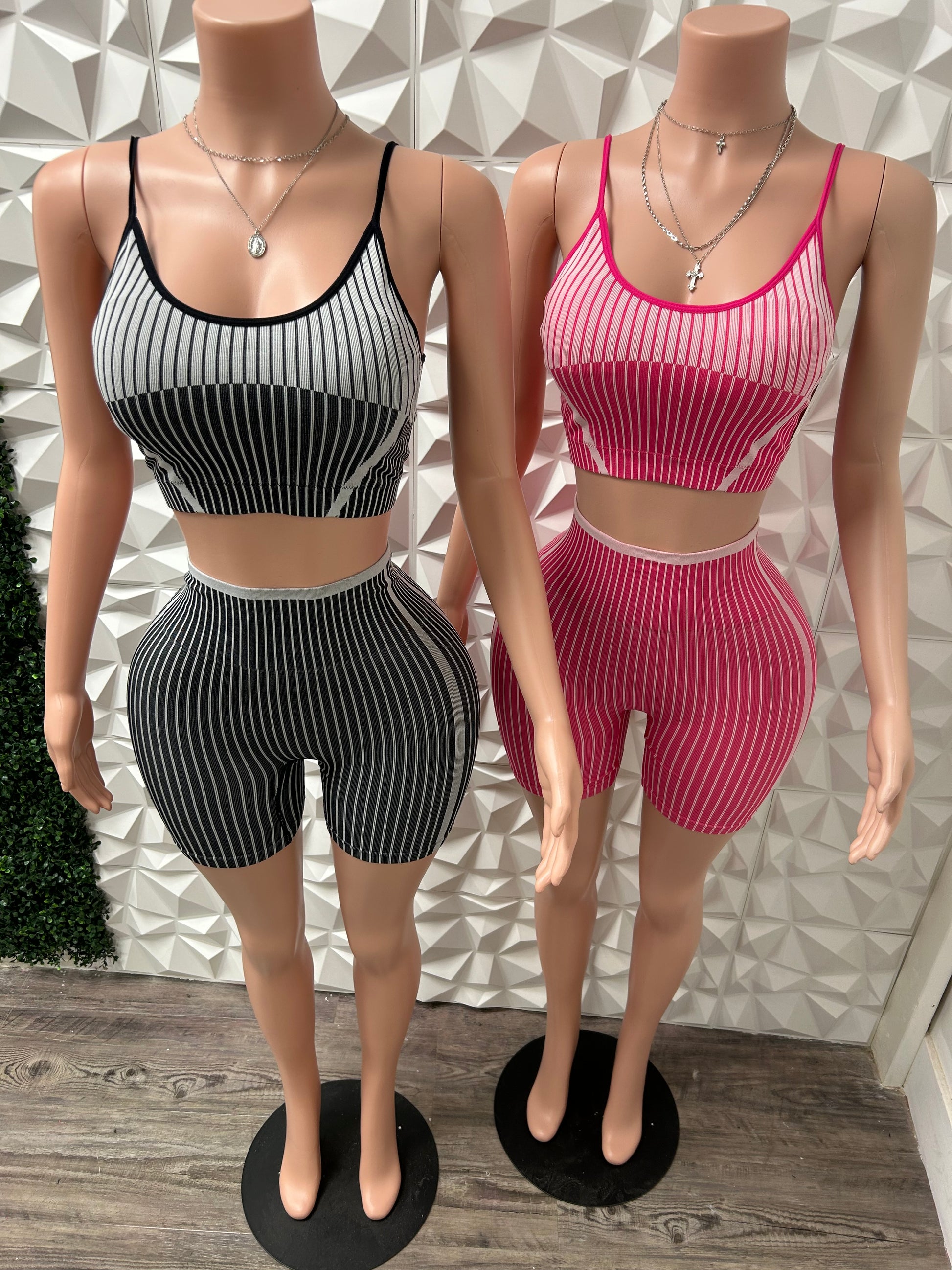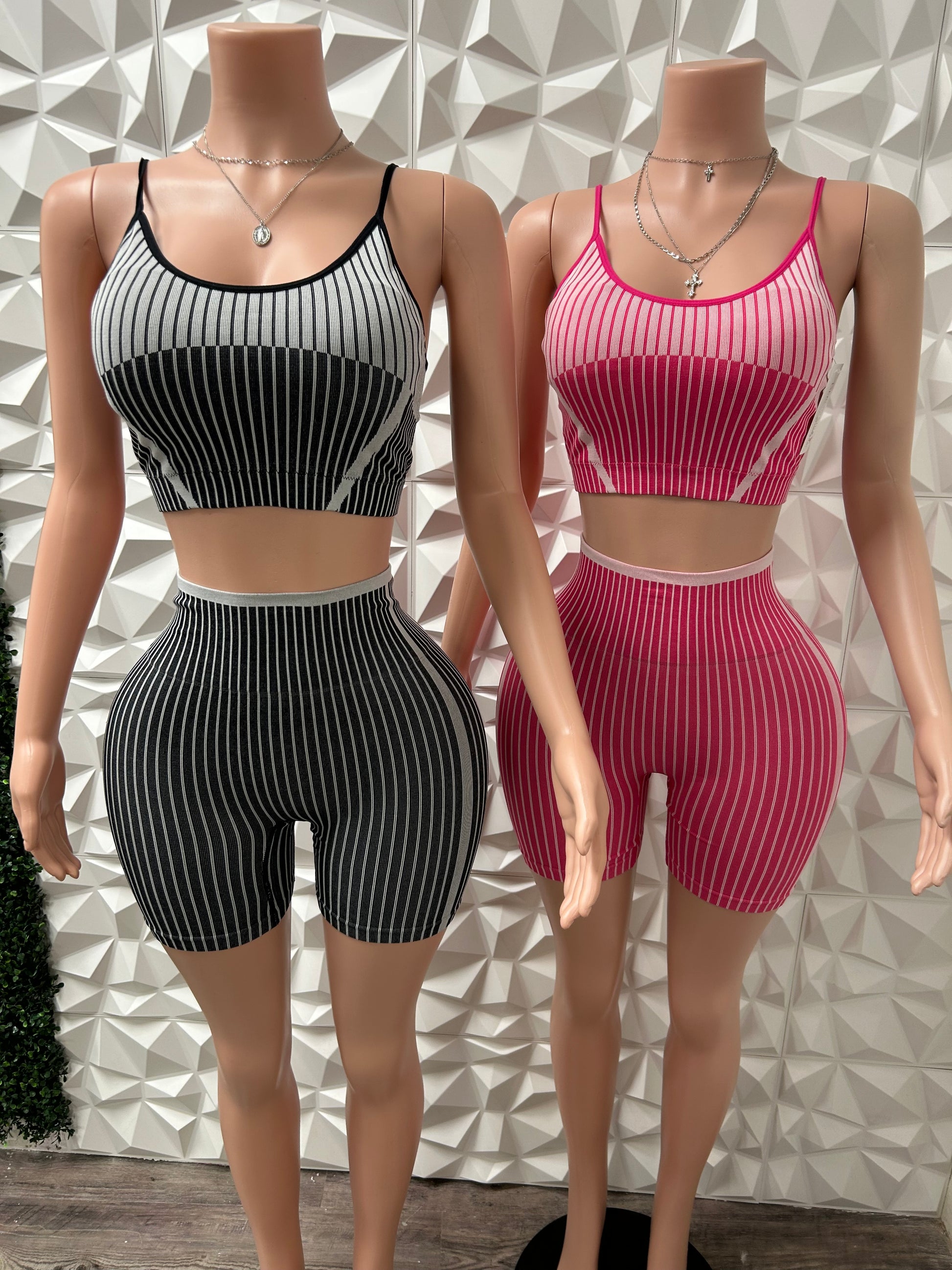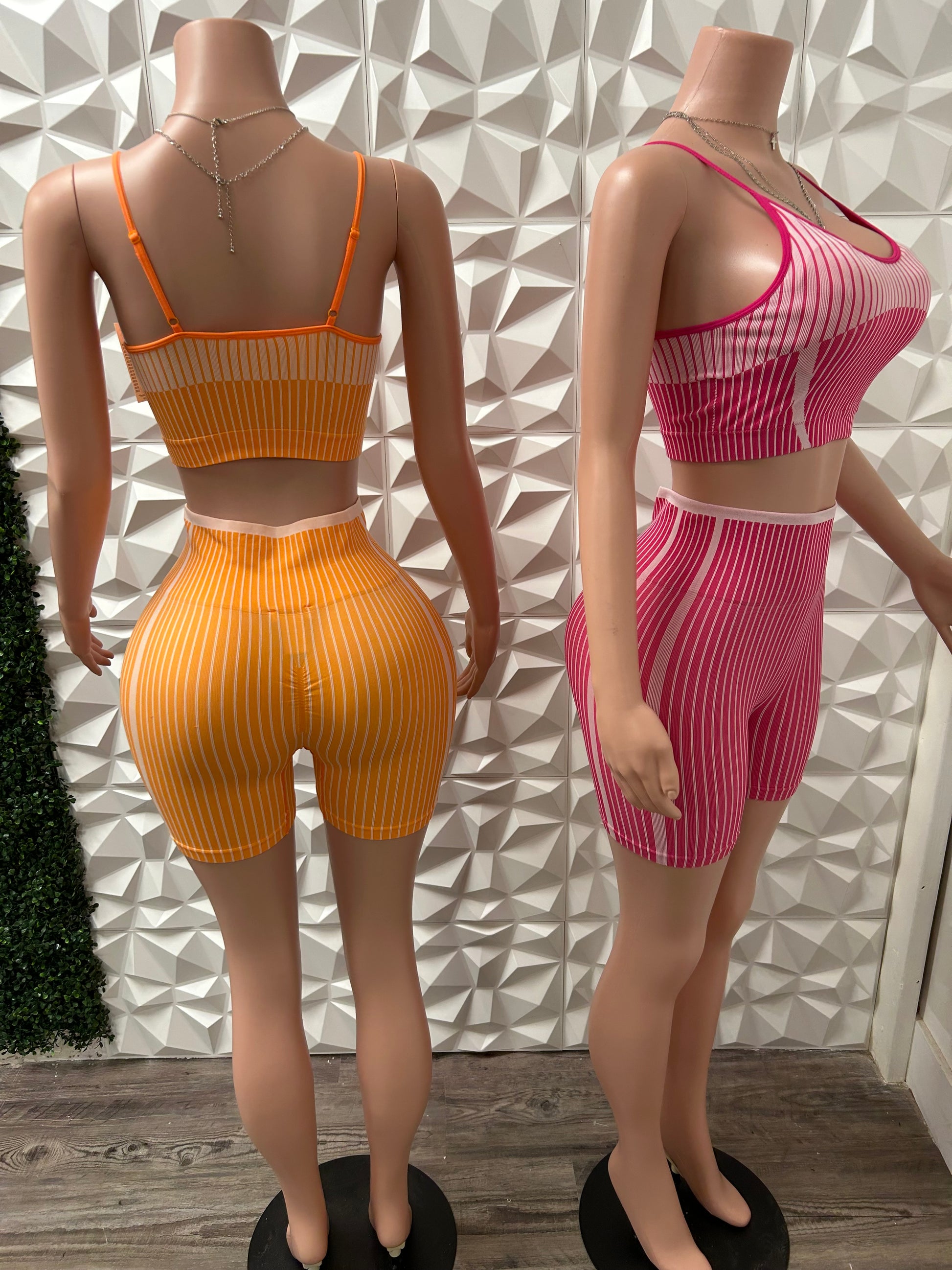 striped active stretchy two piece set with built in padded bra