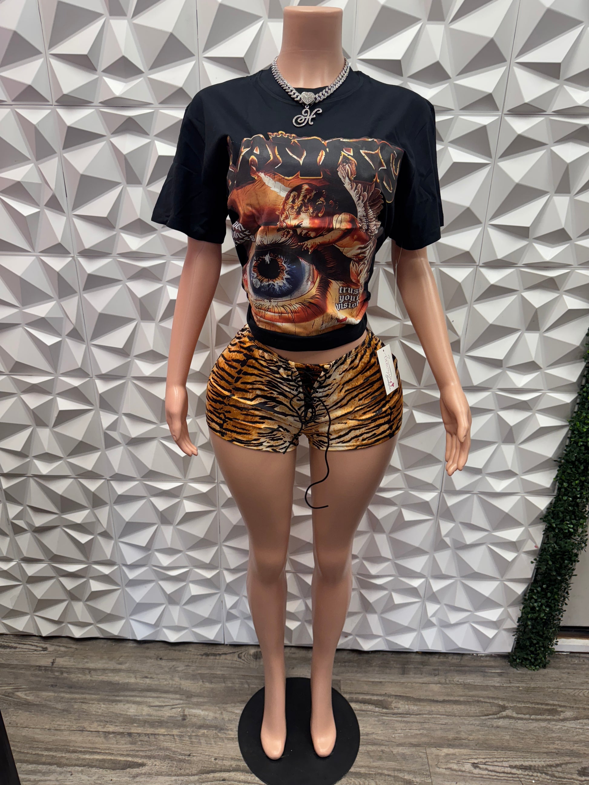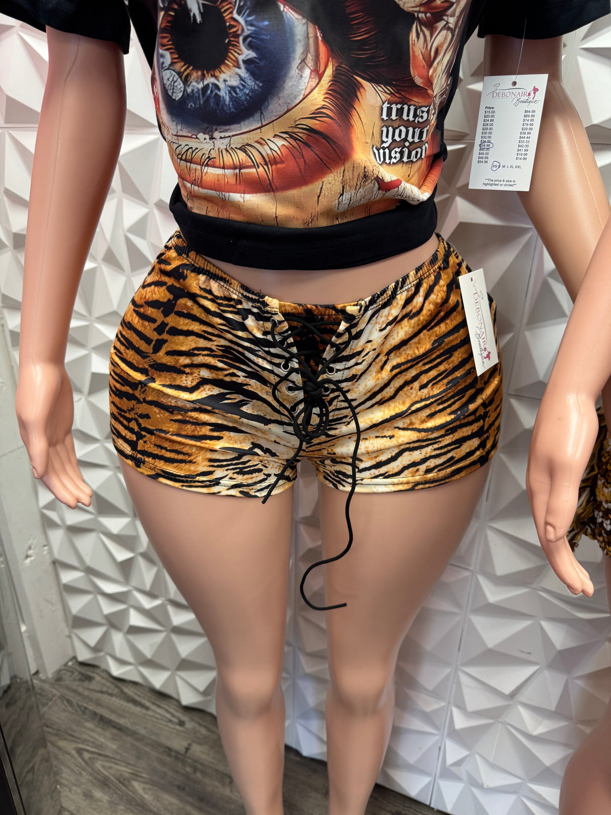 Unique tie up stretchy animal print shorts