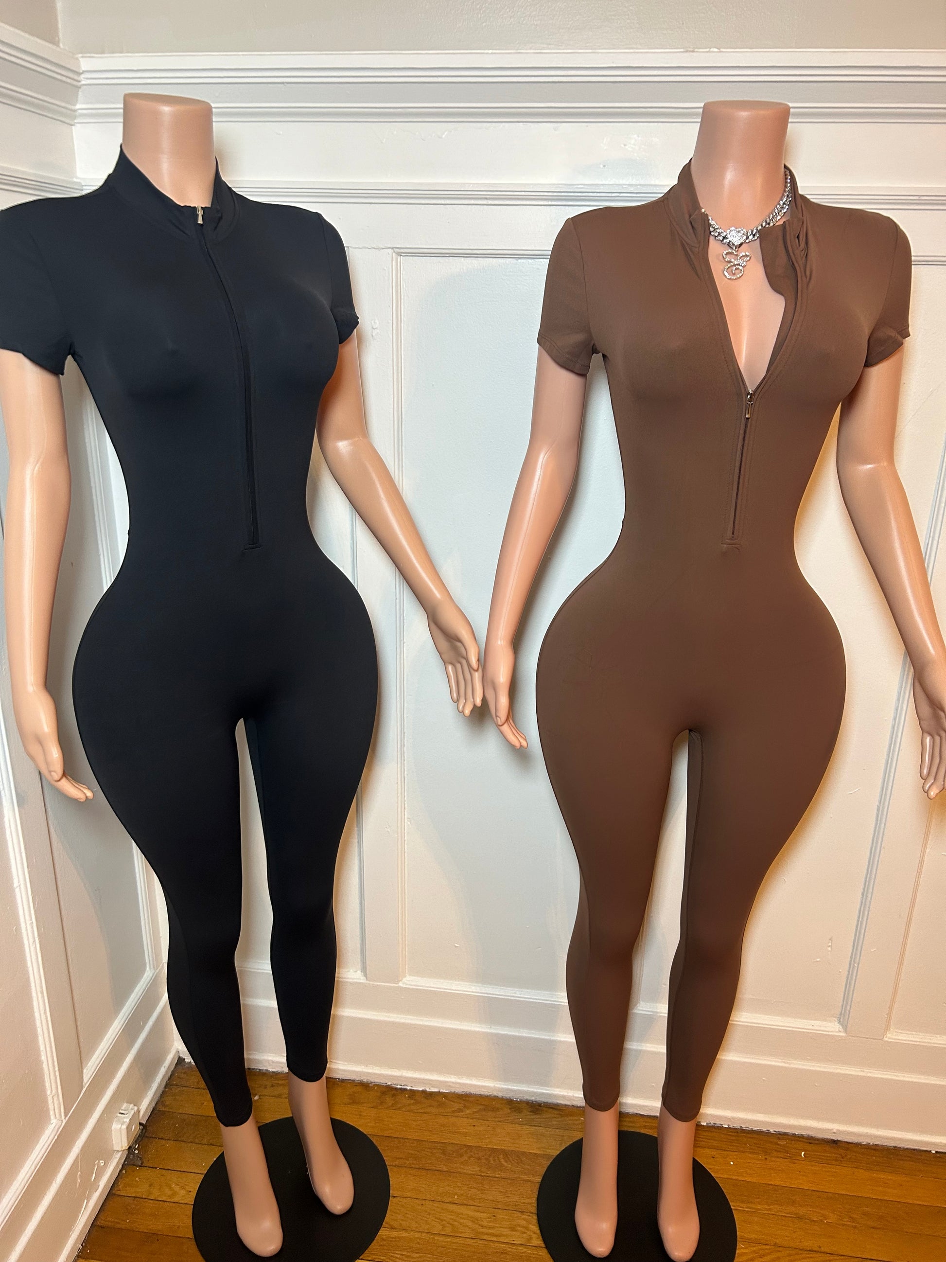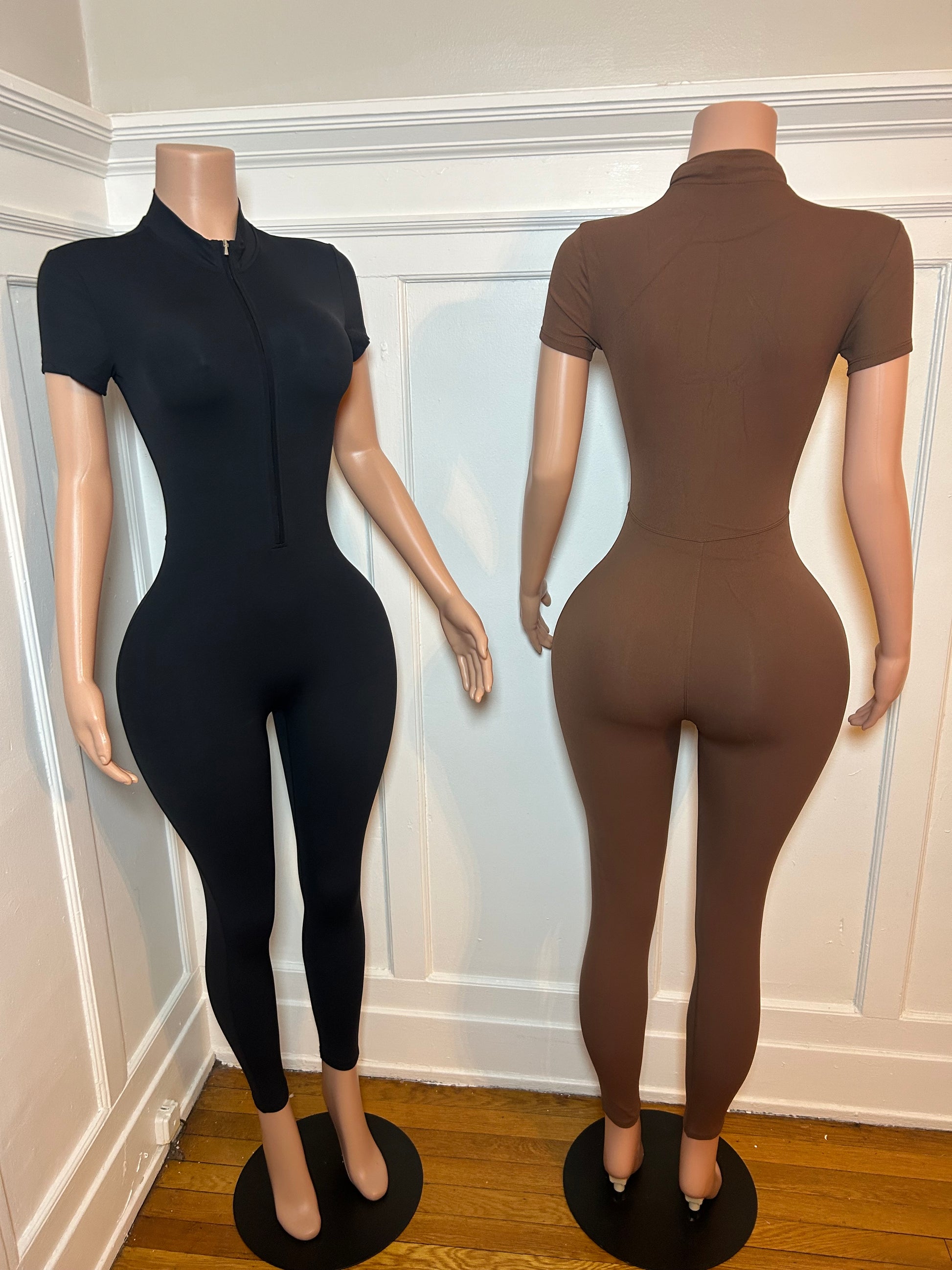 basic zip Bodycon jumpsuit super stretchy soft cotton material