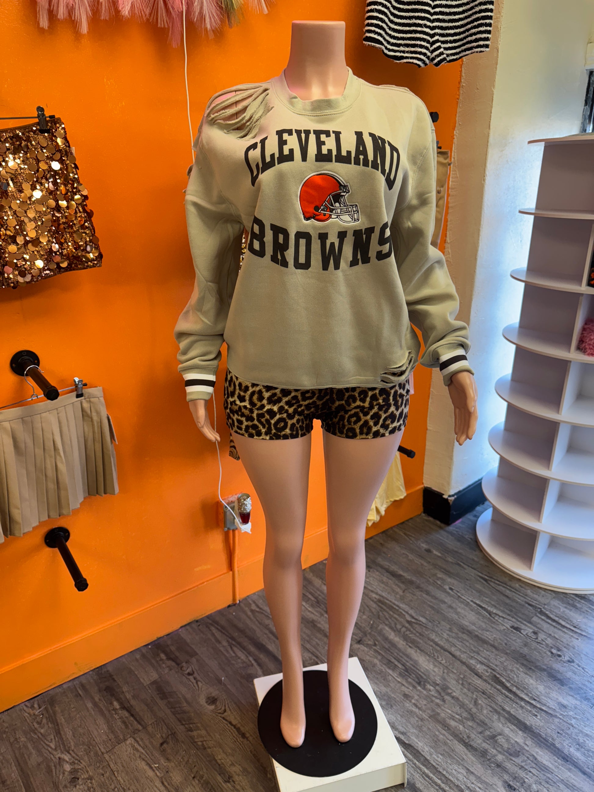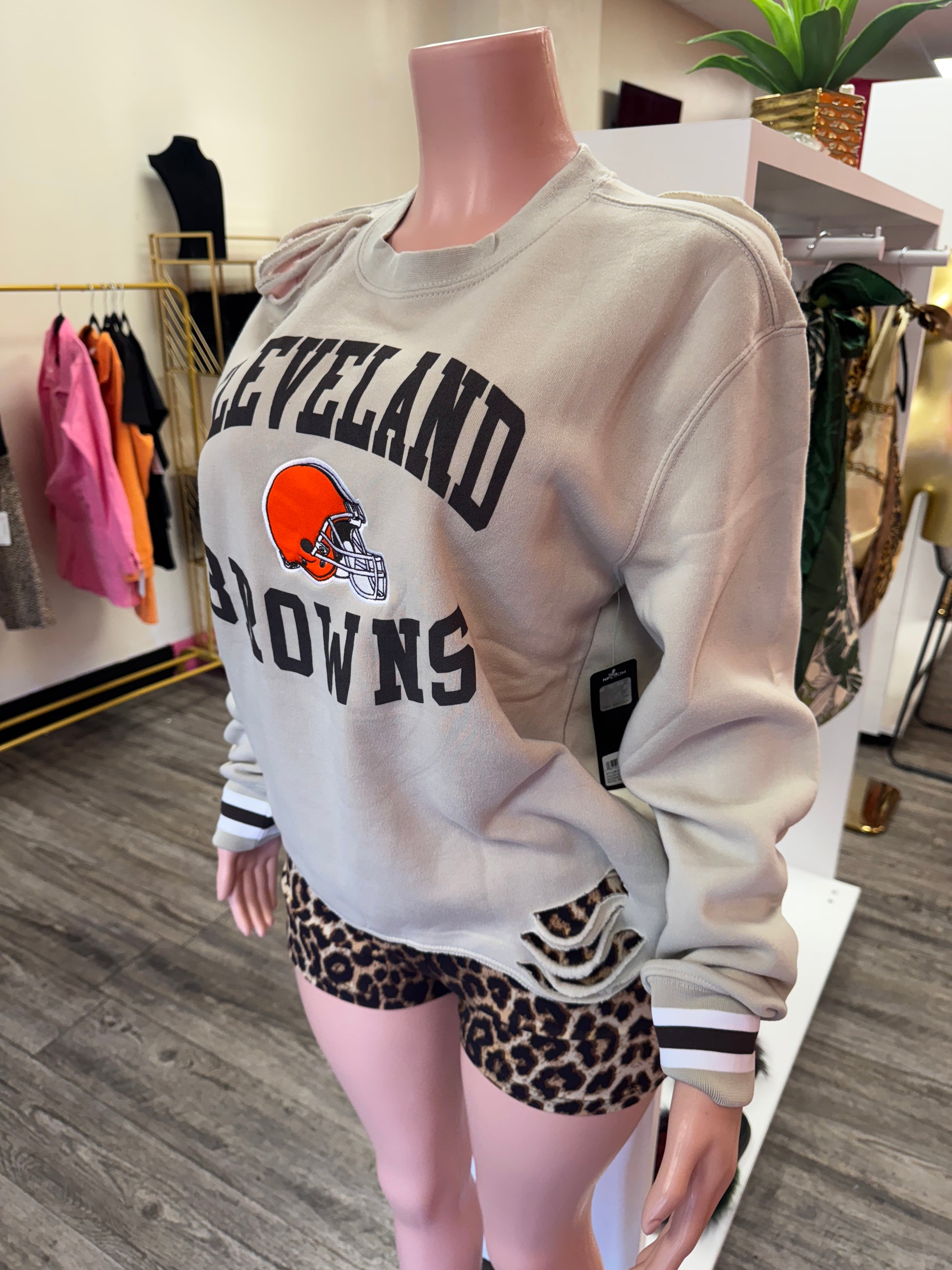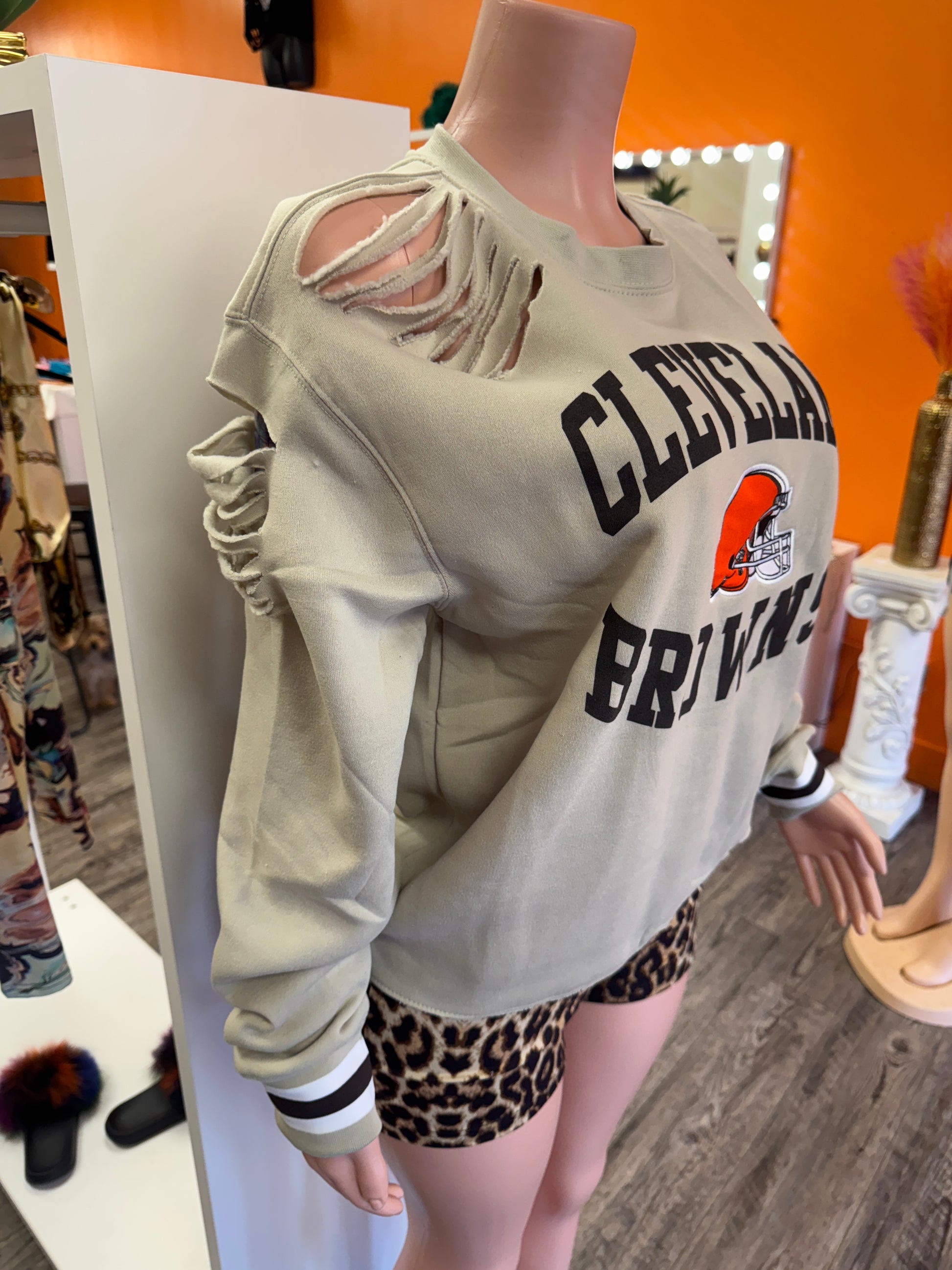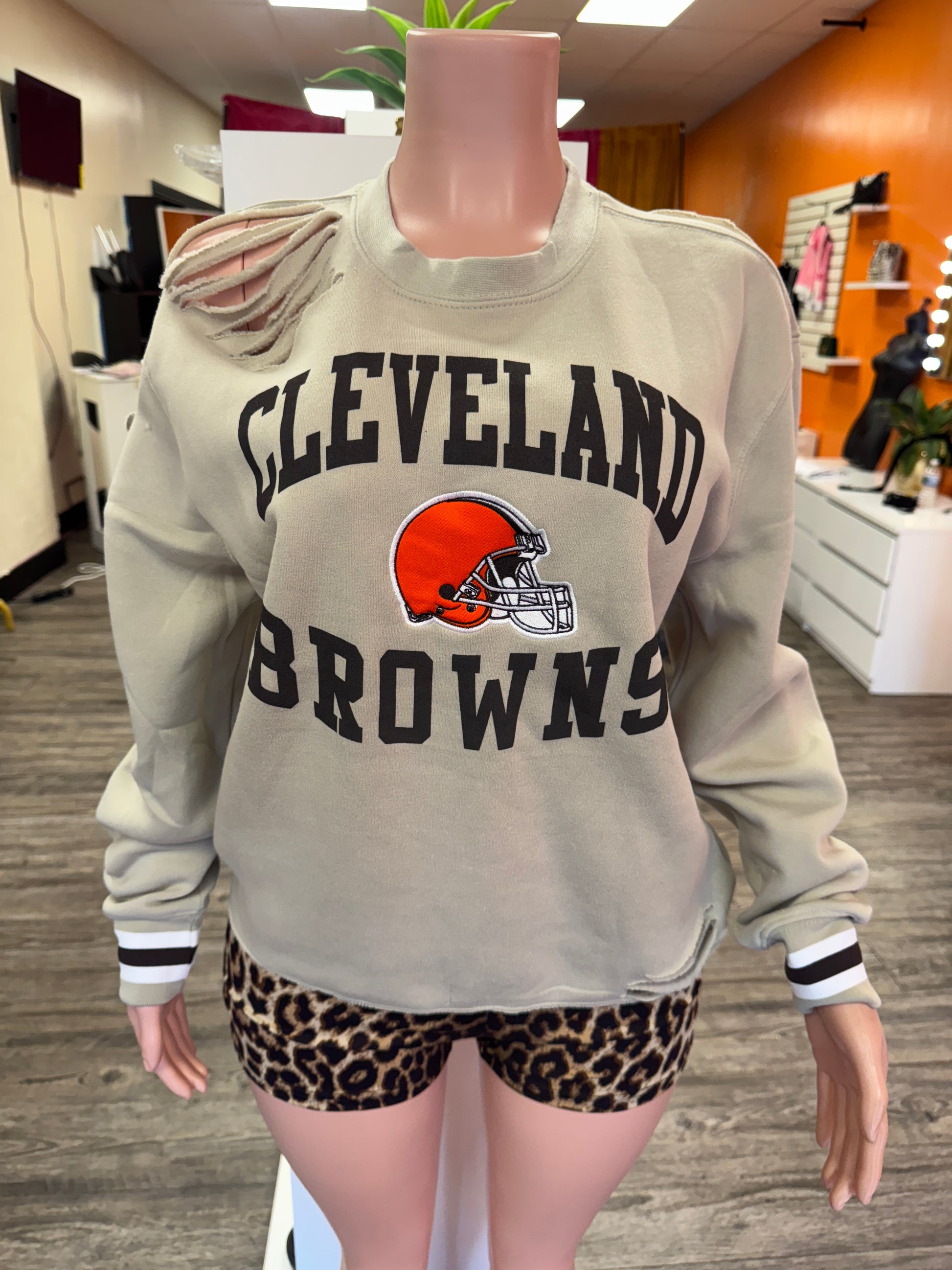 custom distressed Browns sweatshirt with Headband runs oversized