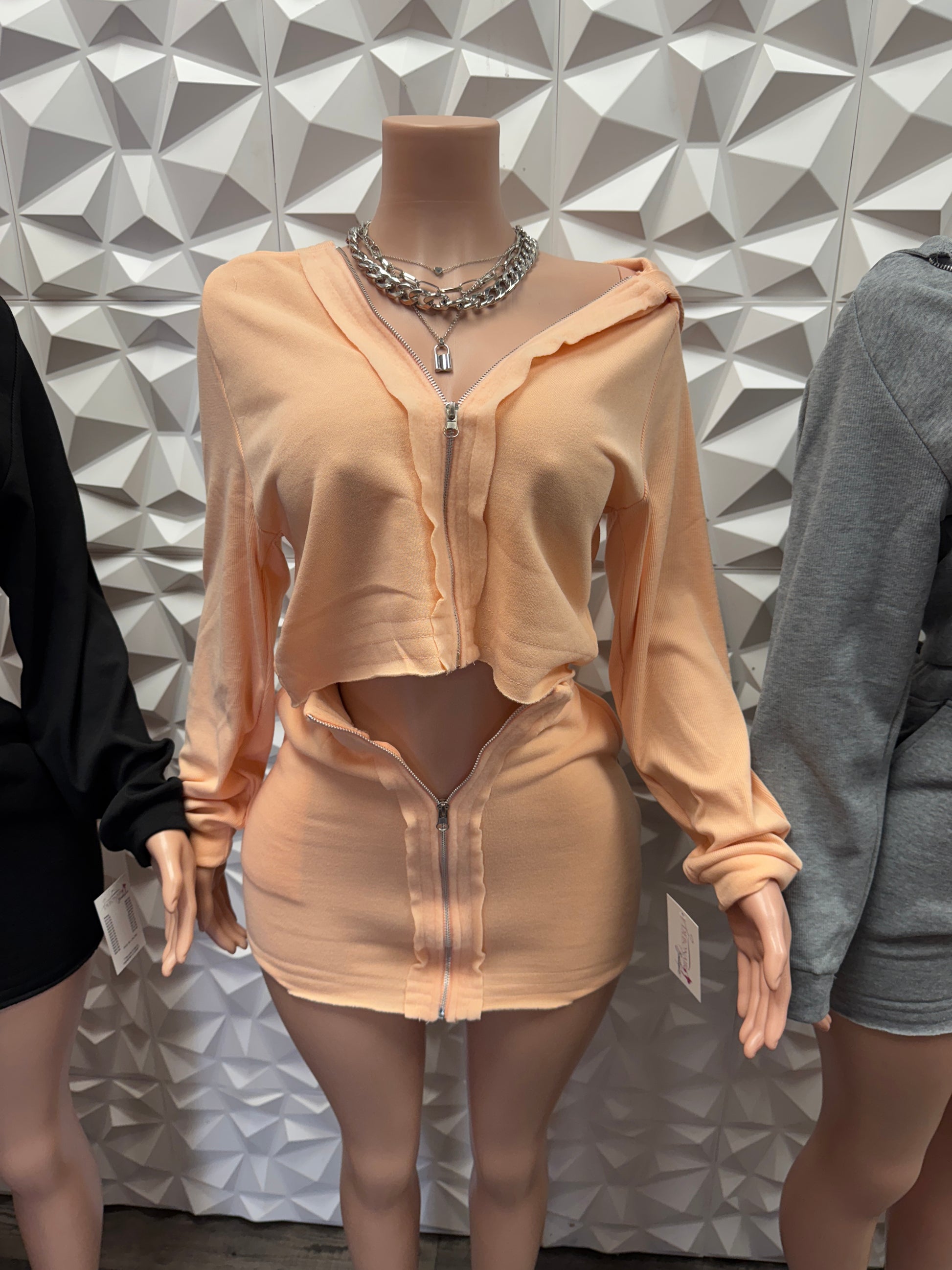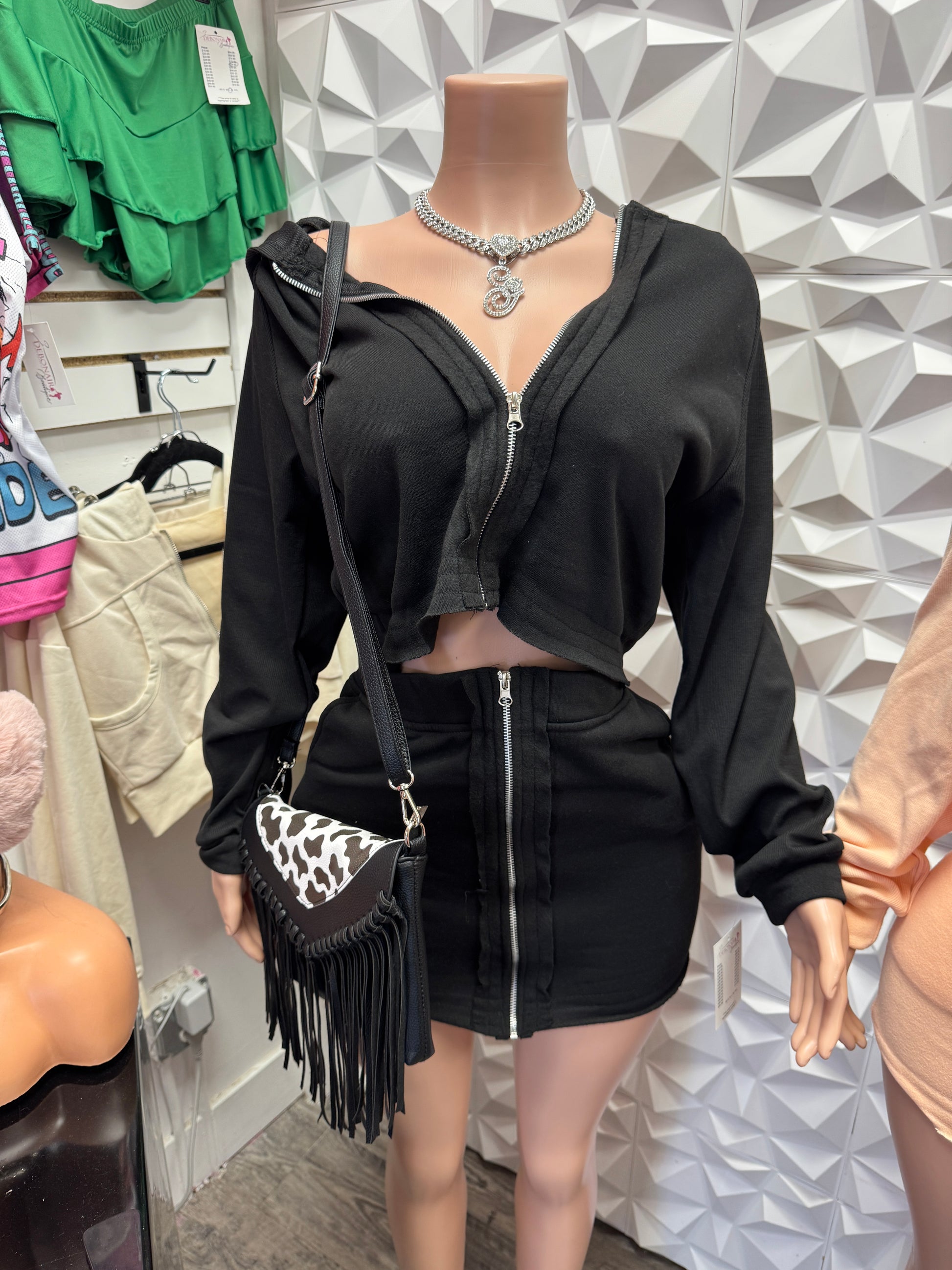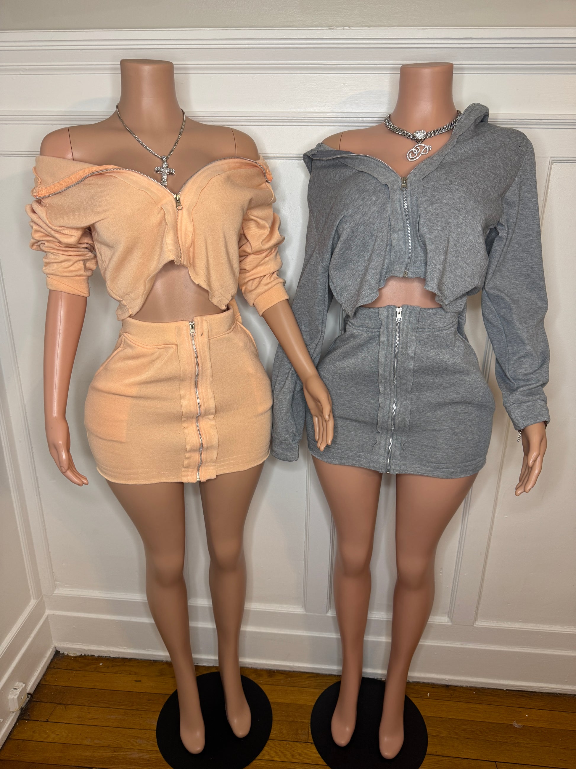 Cargo zip skirt and hoodie set