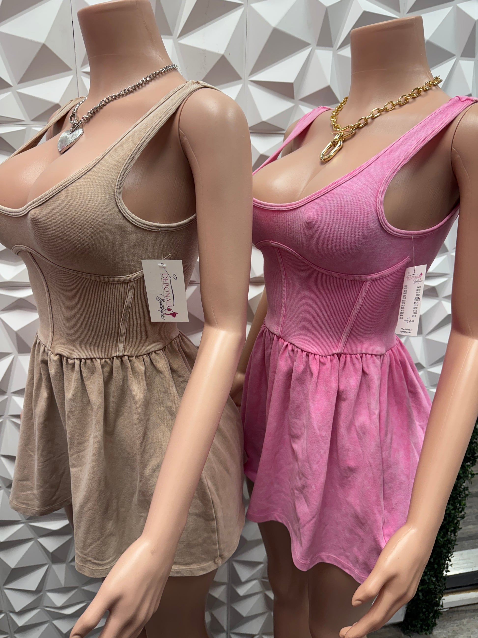 Introducing our washed corset ruffle dress, a stylish and trendy addition to your wardrobe. Made from durable cottoman breeze material, this dress is built to last and withstand frequent wear. The flare design adds a touch of elegance and sophistication to the dress, making it perfect for a night out or a special occasion.
