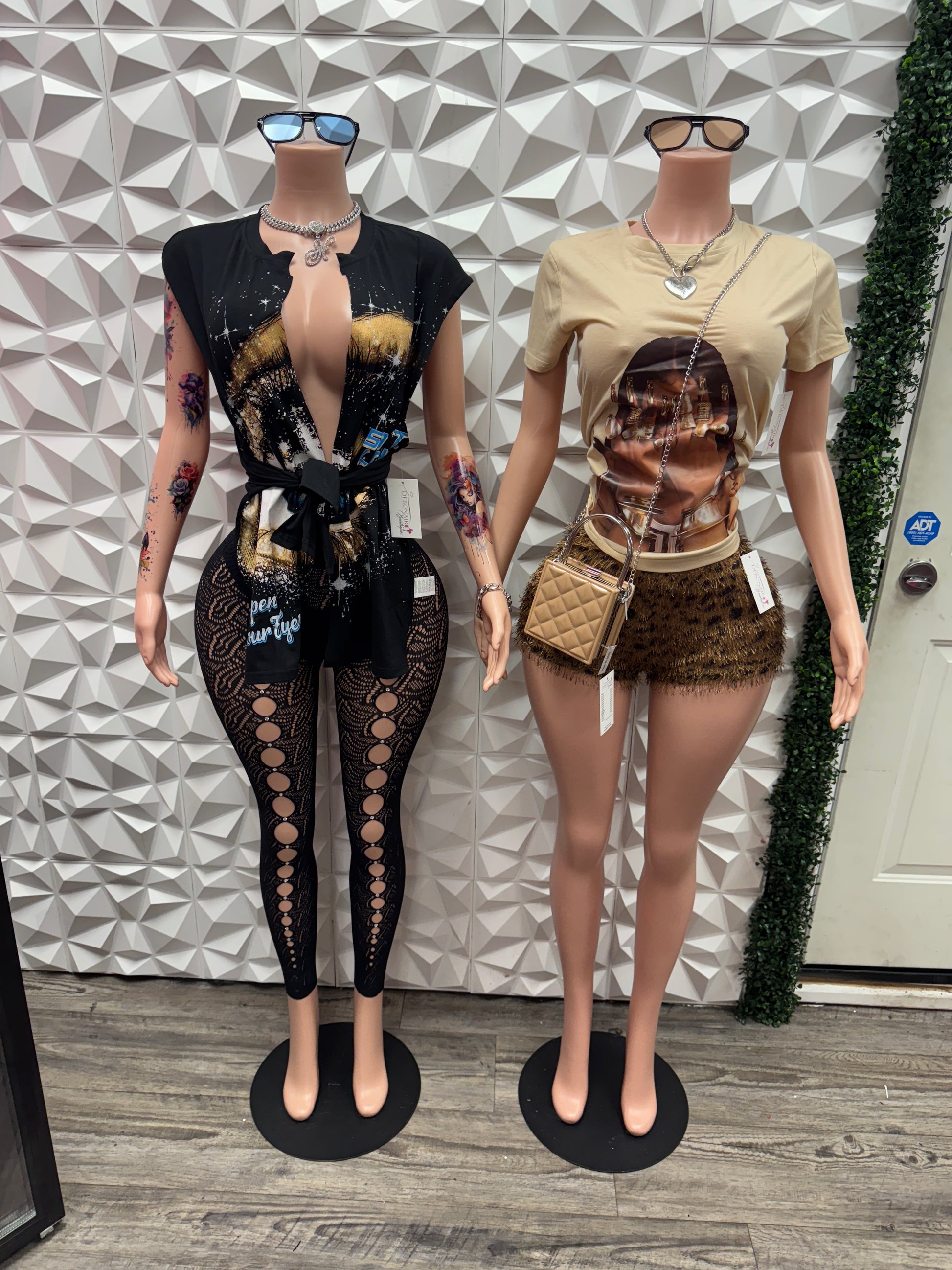 Black Unique lace leggings with front rhinestones and super stretchy- One sizes fits all -