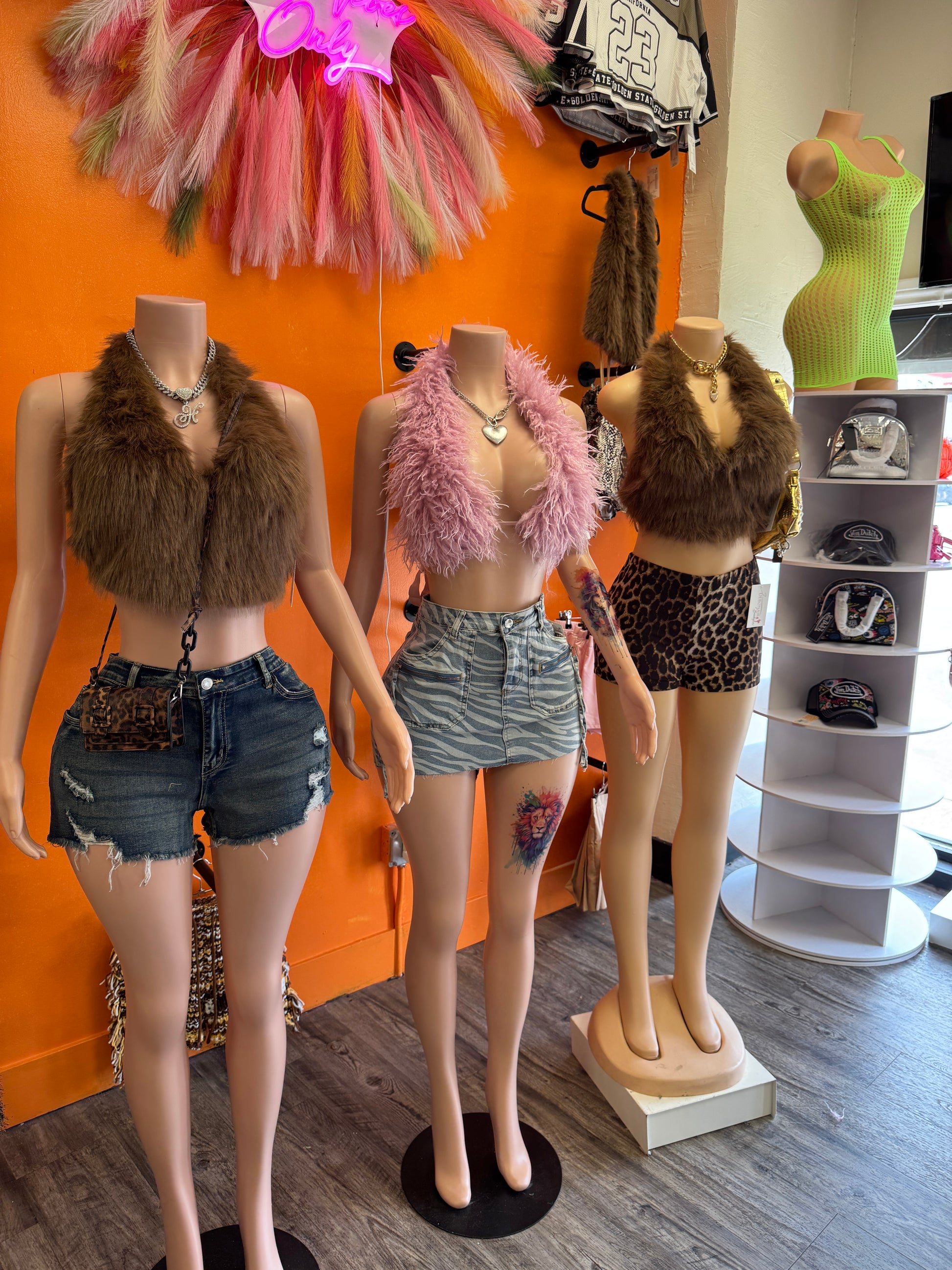 Channel timeless sophistication and cozy elegance with this blackless sleeveless fur top featuring a luxurious fur collar and bold button detailing at the sleeves. Crafted from a sleek, high-quality fabric, this top offers a perfect balance of comfort and style. The plush fur collar adds a touch of opulence and warmth, making it ideal for transitional seasons or winter evenings. The unique button accents at the sleeves create a striking focal point, adding a modern twist to the classic design. Whether paired with tailored trousers for a polished office look or dressed down with jeans and boots for a chic casual ensemble, this top is a versatile wardrobe staple that exudes confidence and refinement. Perfect for those who appreciate understated luxury and attention to detail, this piece is a must-have for elevating your everyday style.