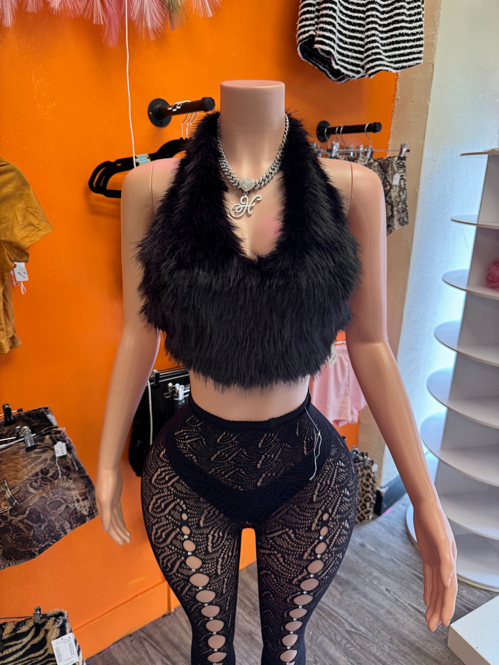 Double Tie up Backless Fur Top