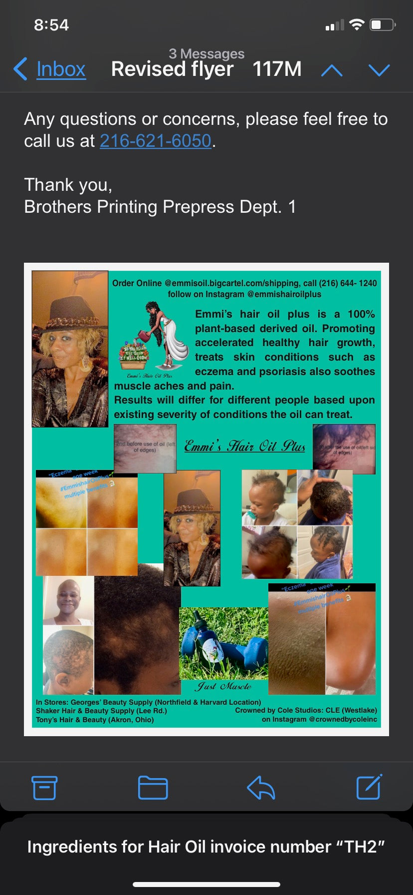 Emmi’s Hair Oil plus is a 100% plant based is oil. Promoting accelerated healthy hair growth, treats skin conditions such as eczema and psoriasis also soothes muscles aches and pain.