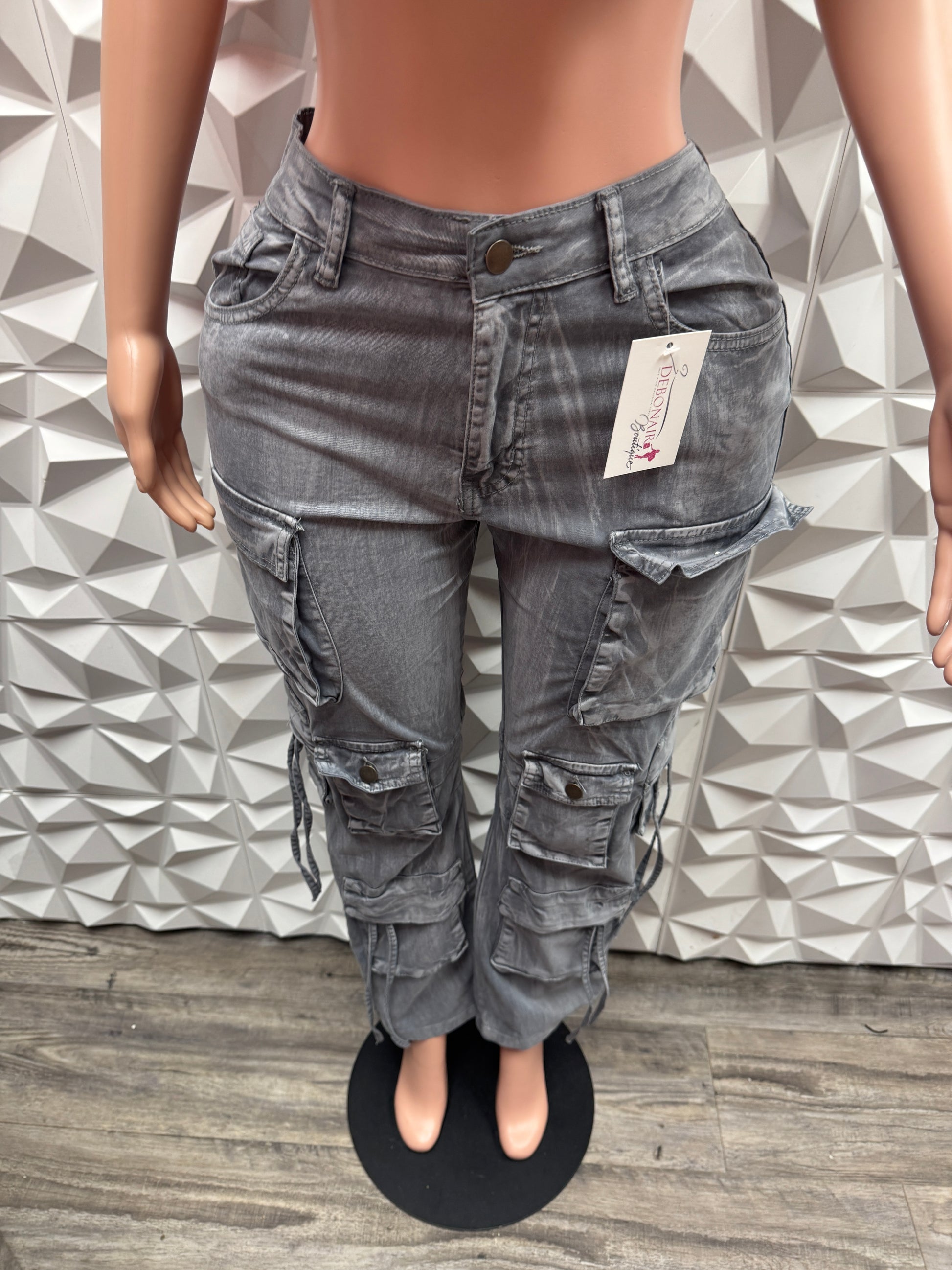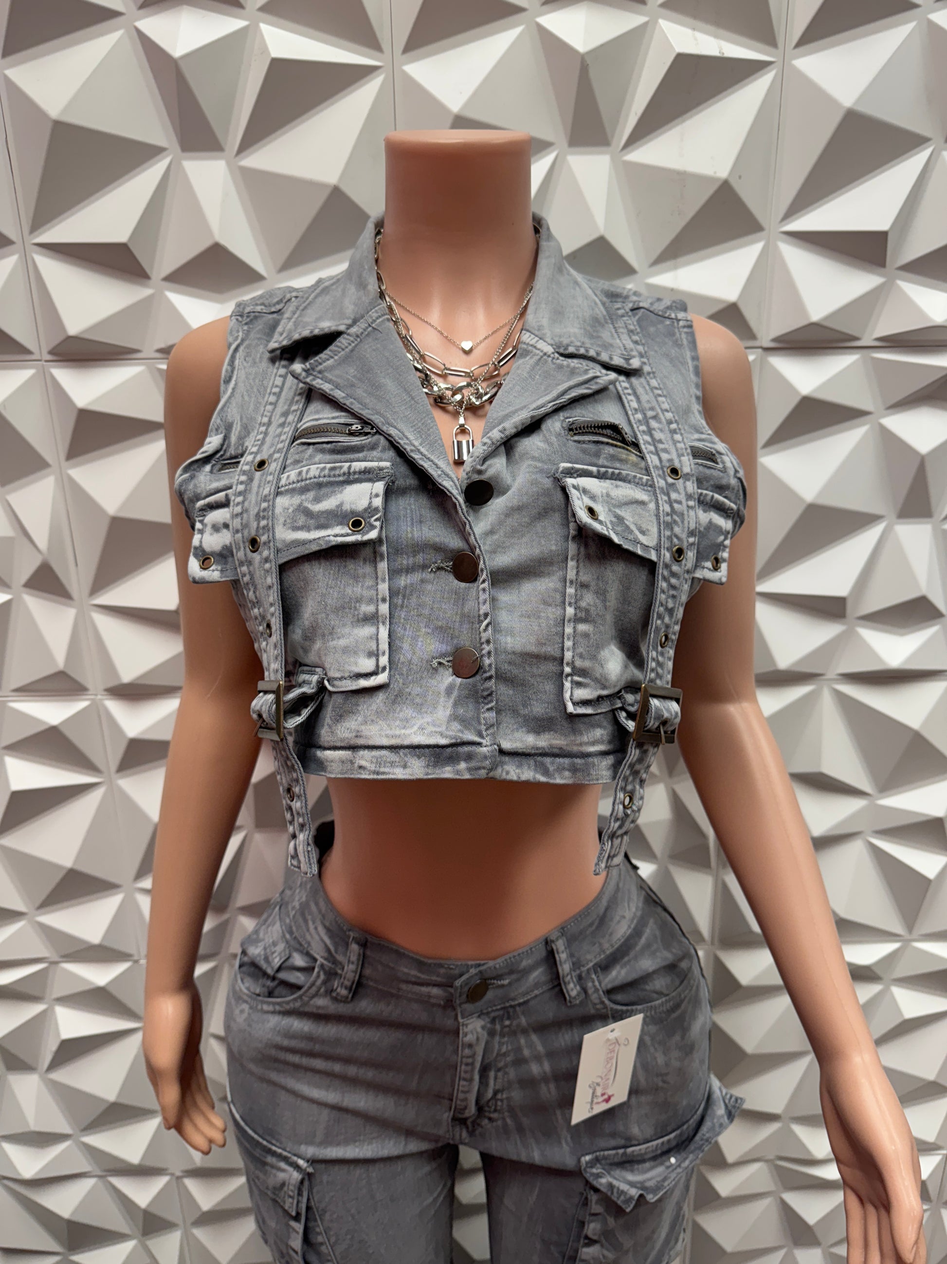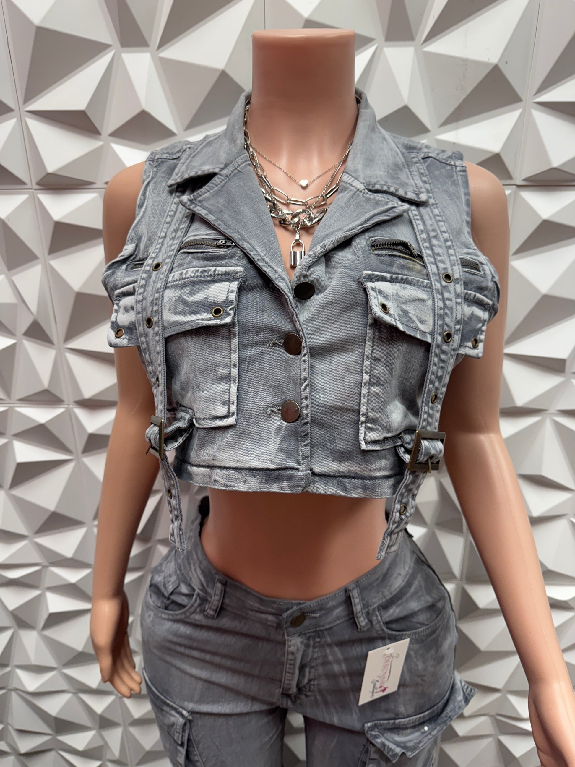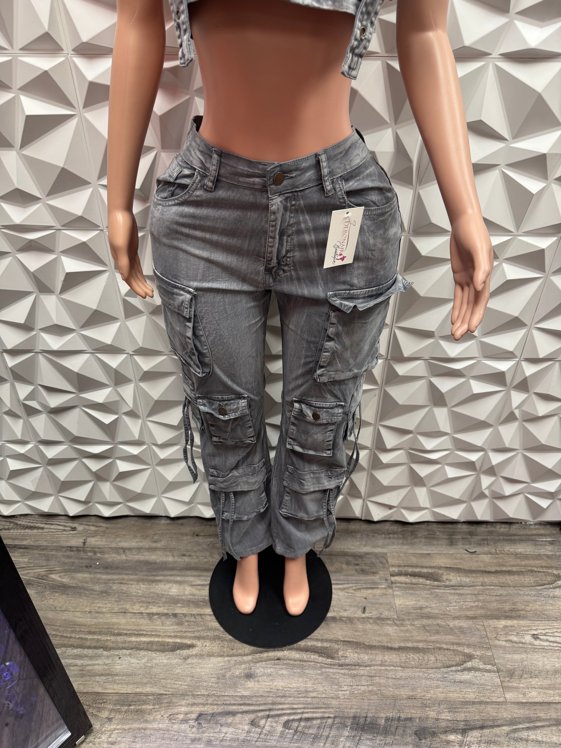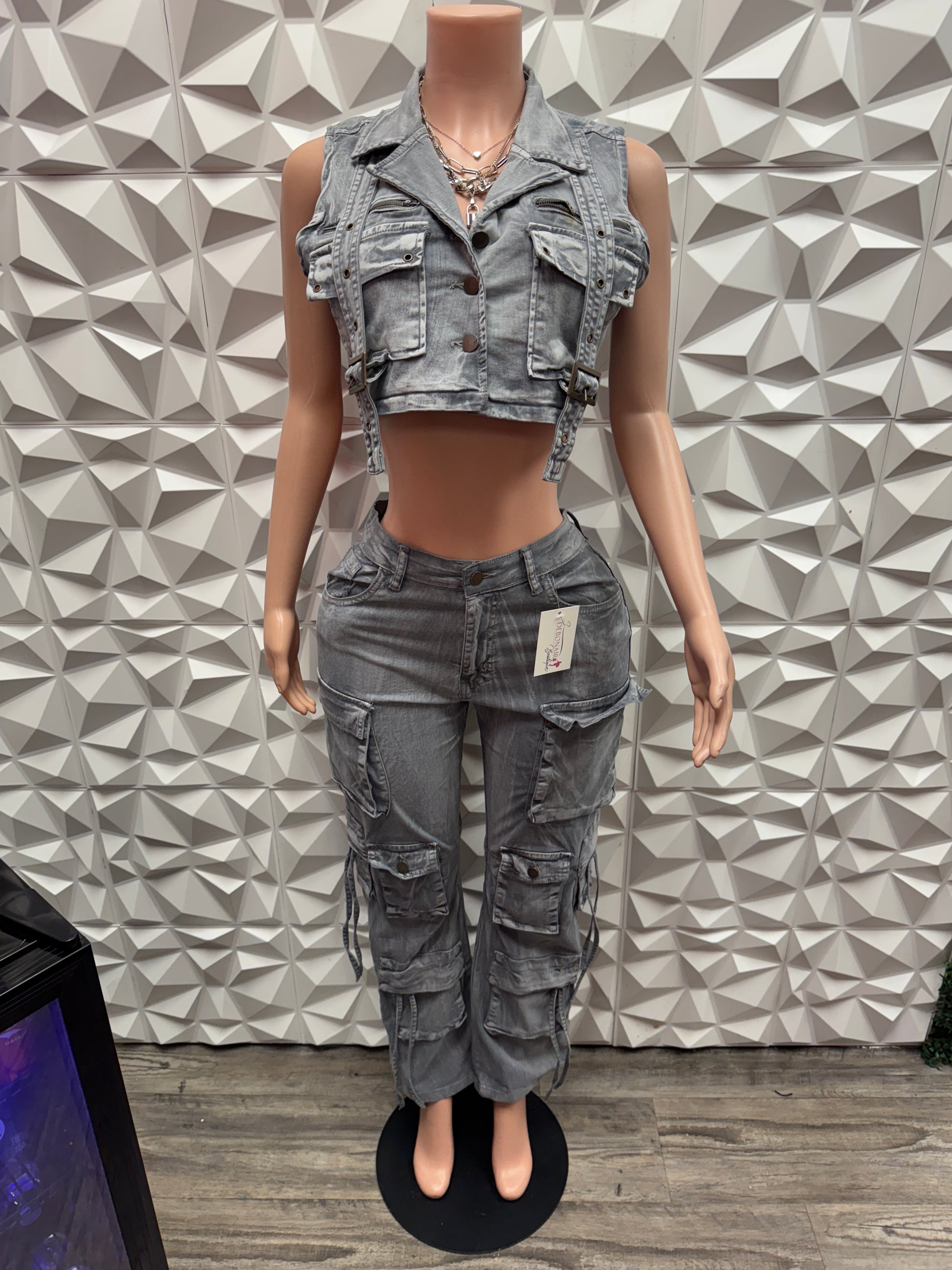 Unique stretchy denim cargo pants two piece set … stretchy denim material