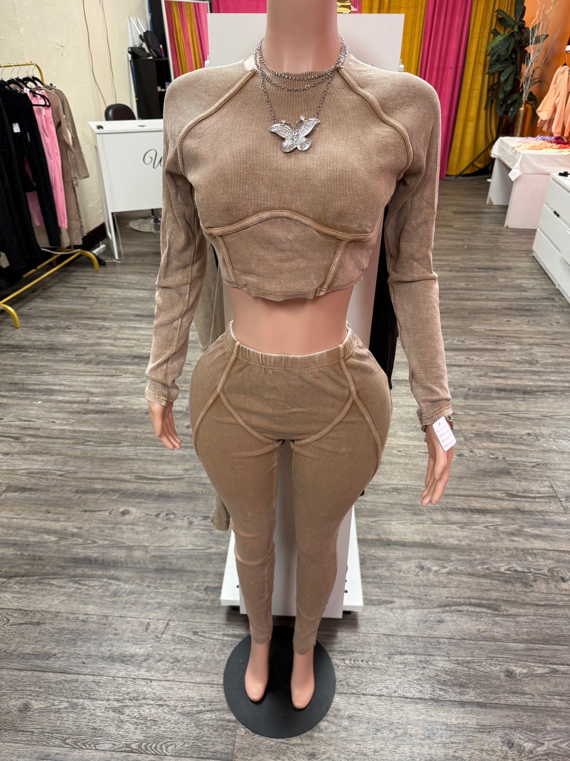 Super stretchy unique design Ribbed two piece set