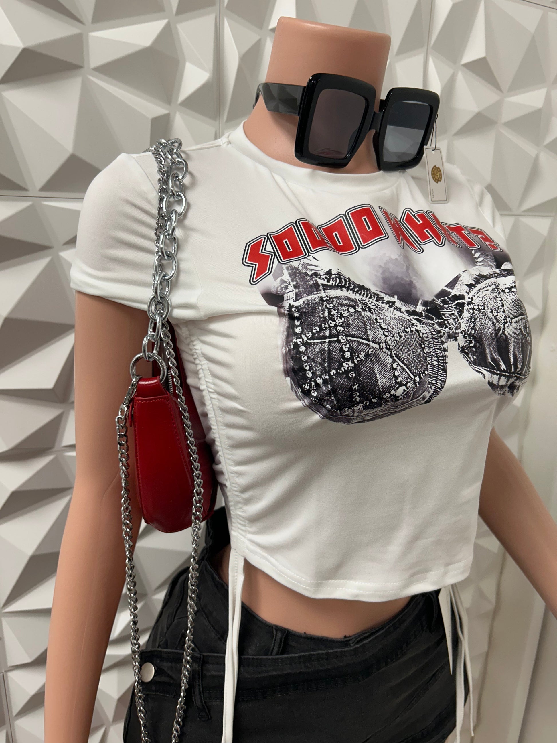Wholesale Cute trendy graphic tee with adjustable length with drawstrings on the sides....