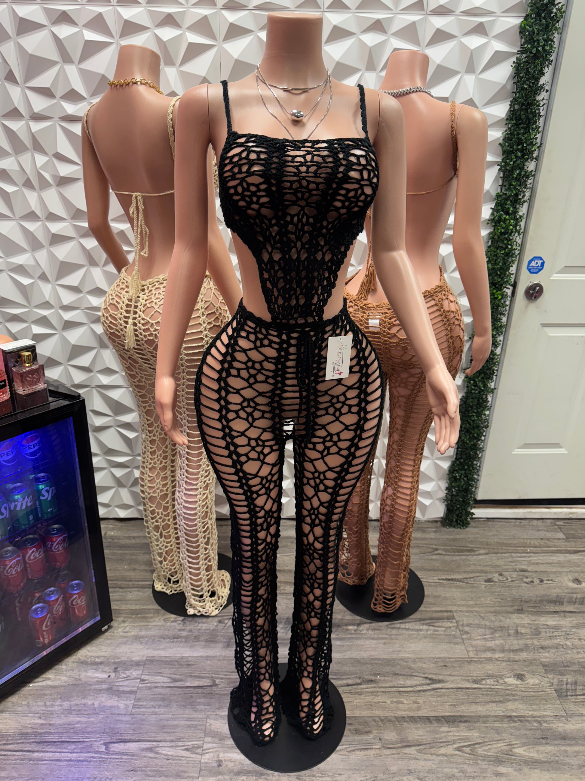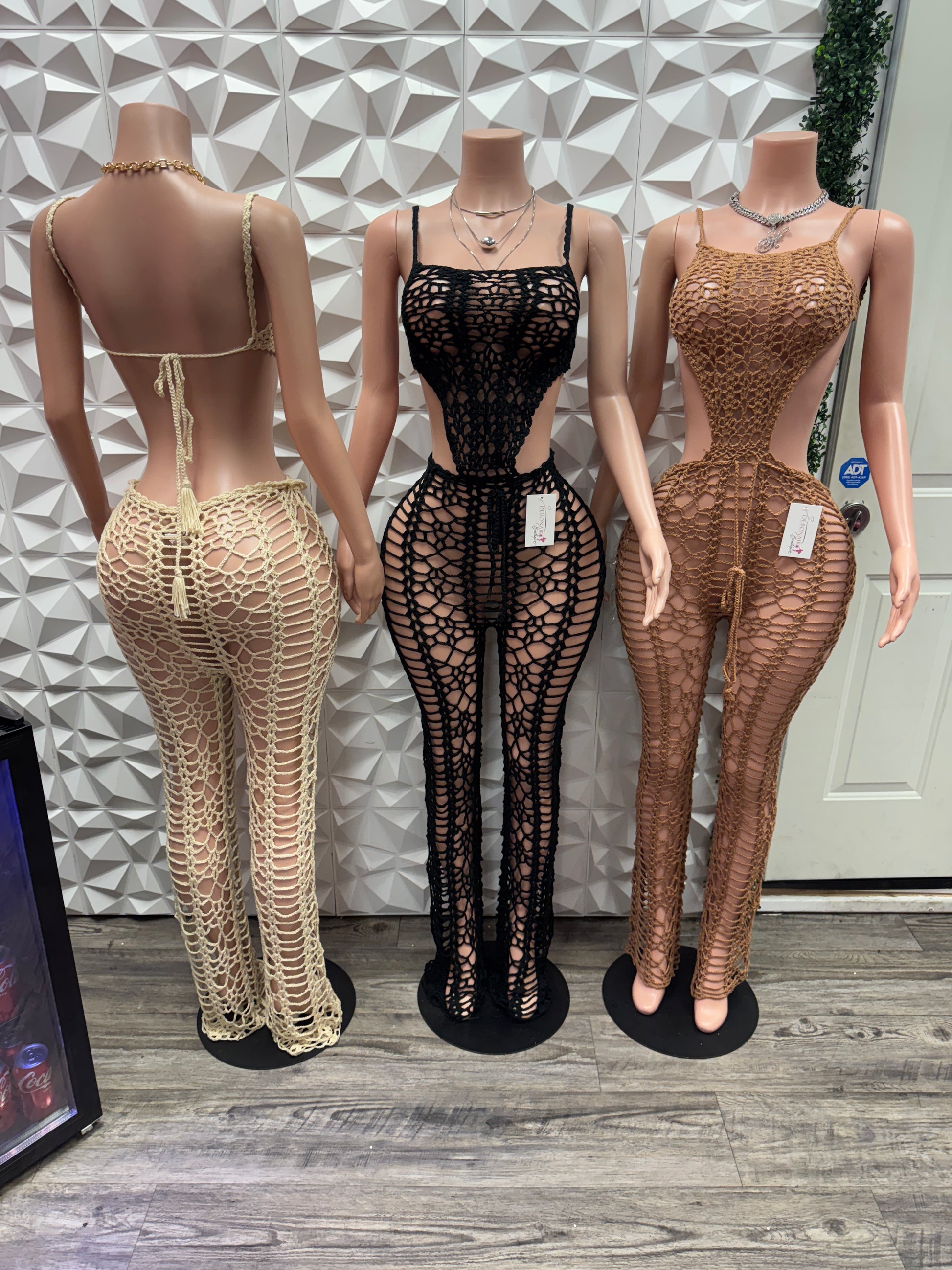 Crochet swimsuit cover up jumpsuit with adjustable ties