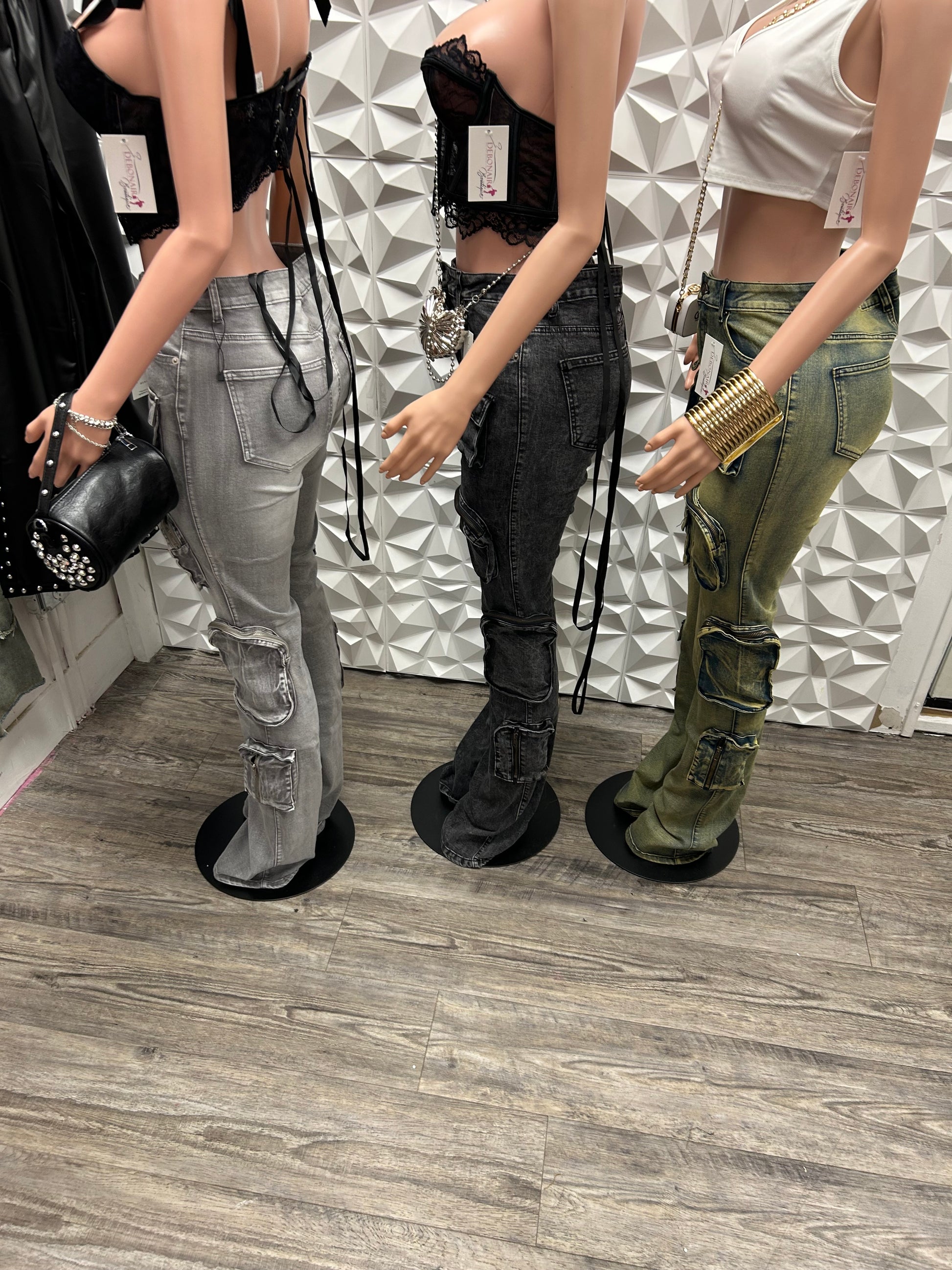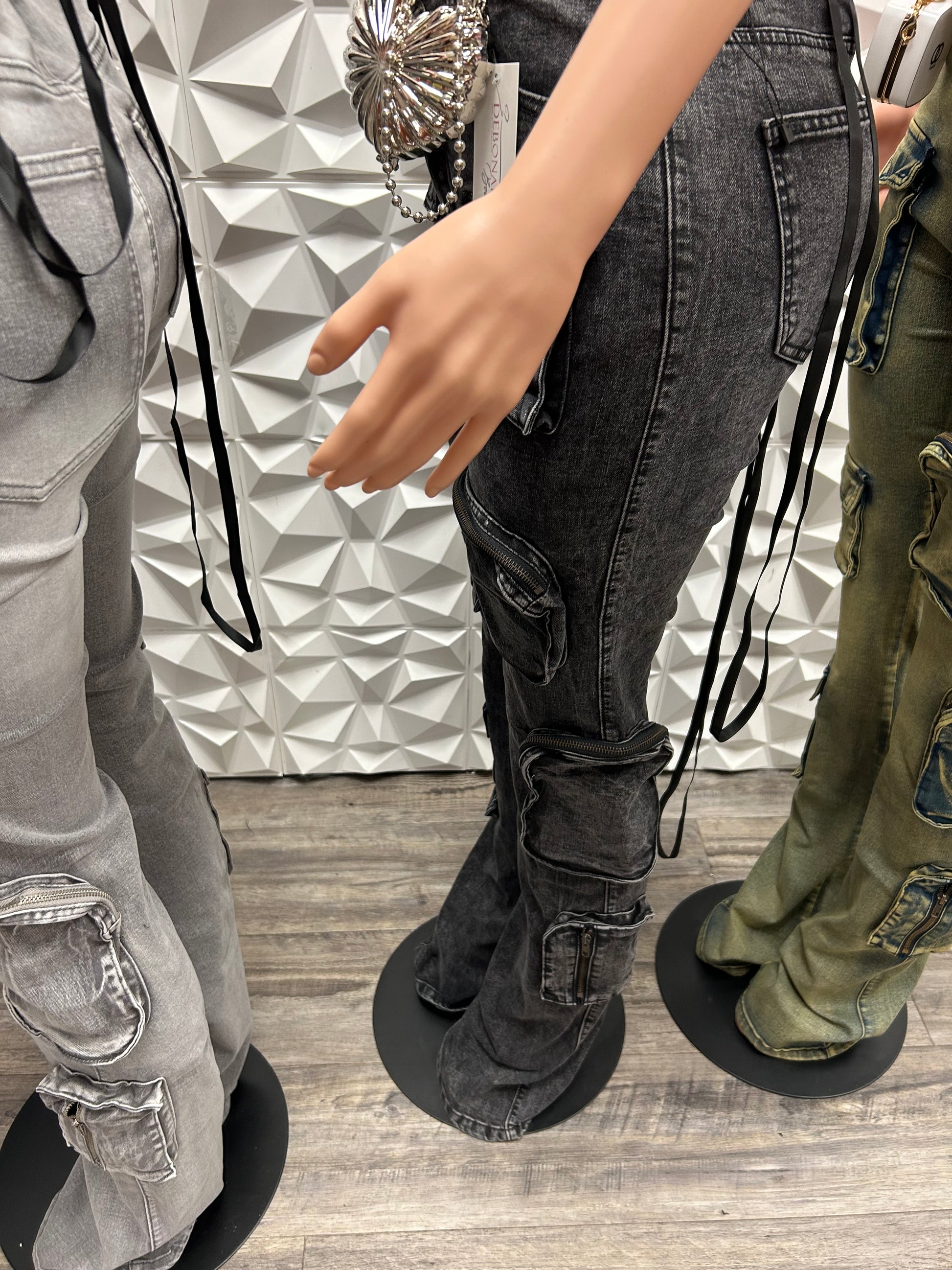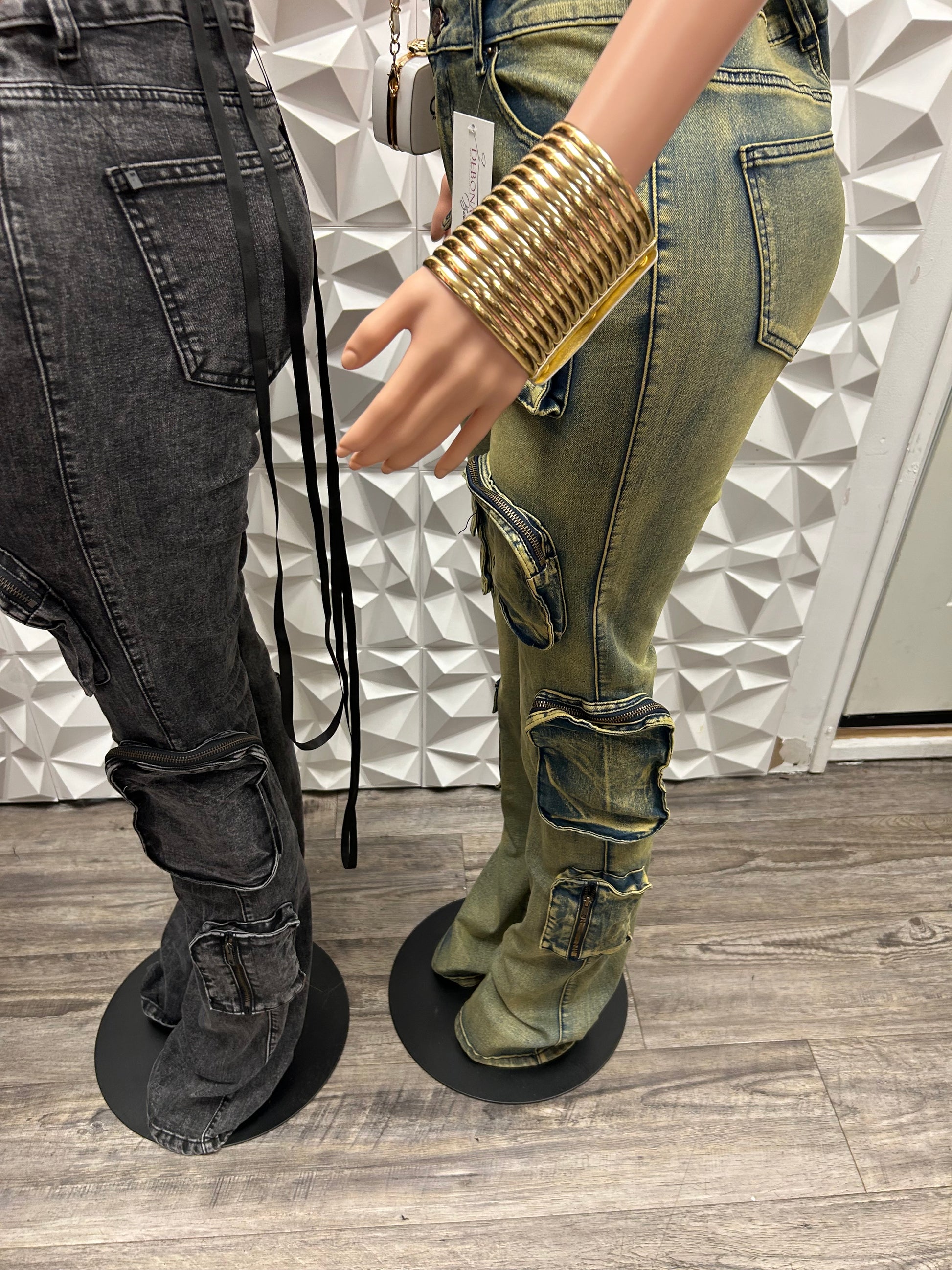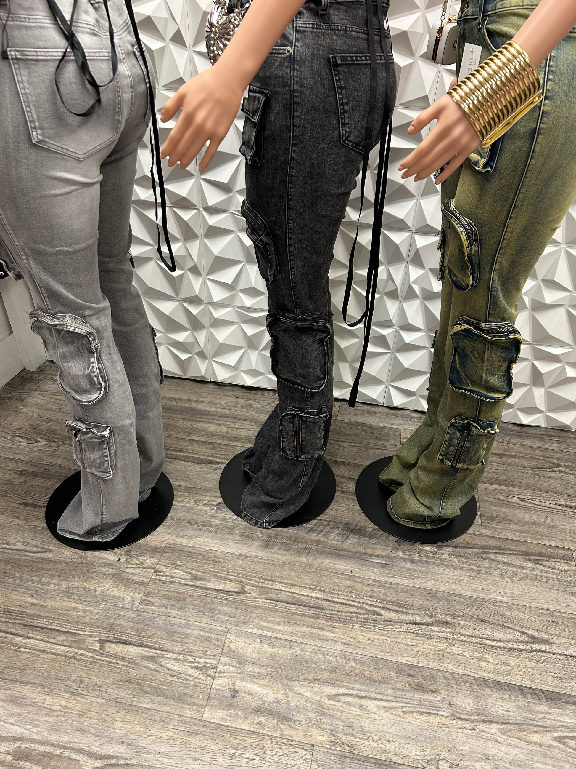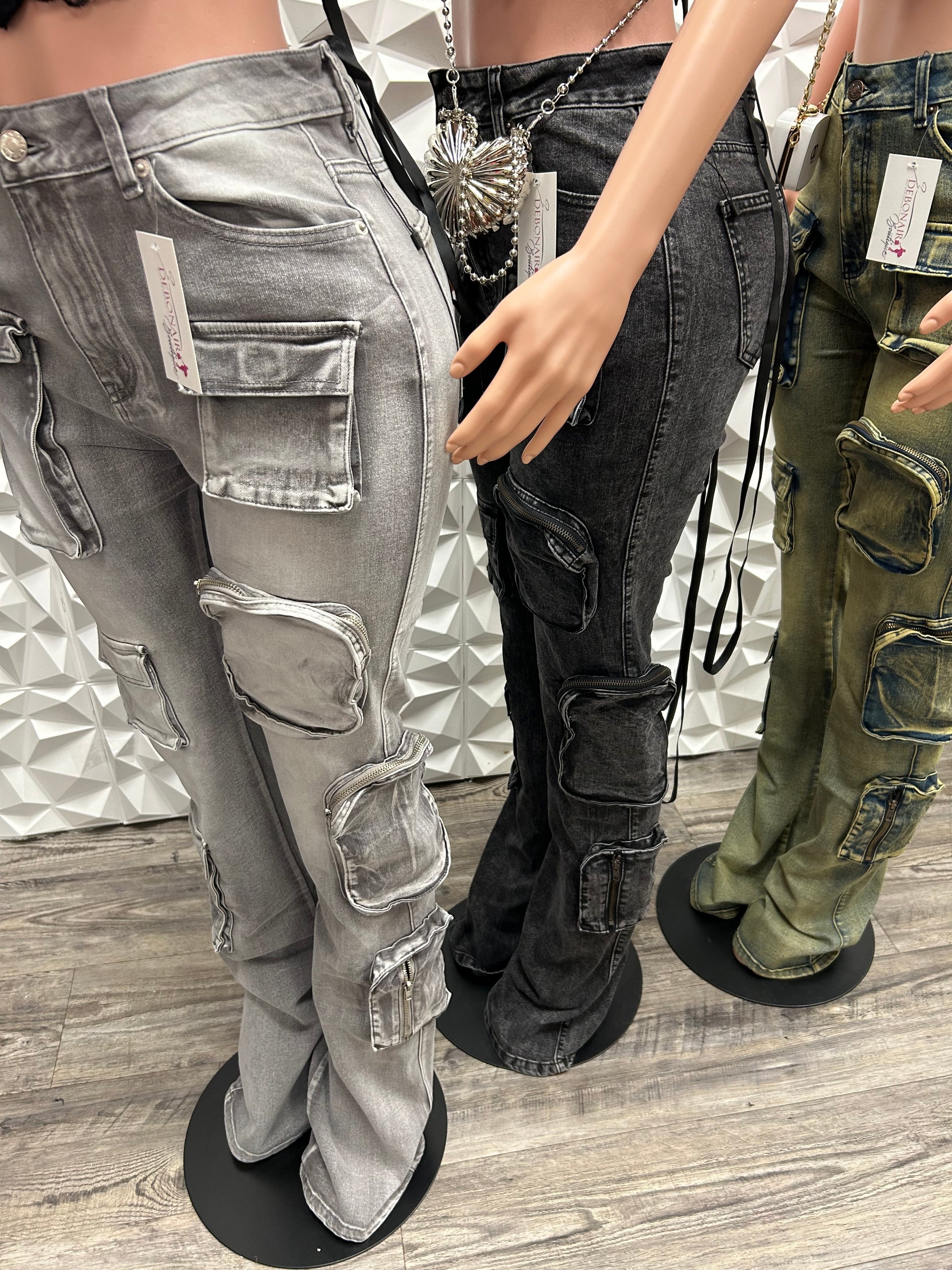 Unique multi pocket denim cargos tall girl friendly and stretchy