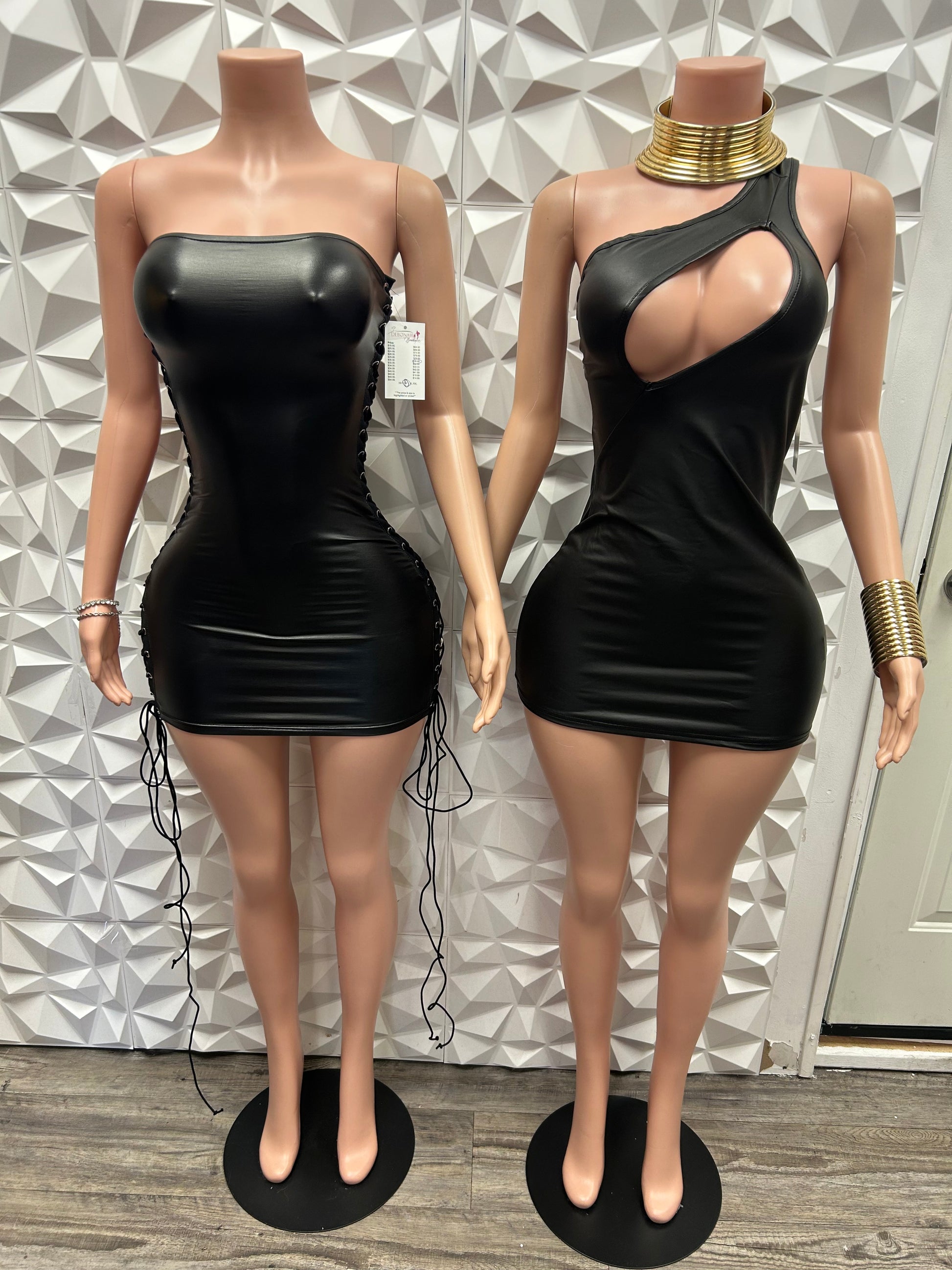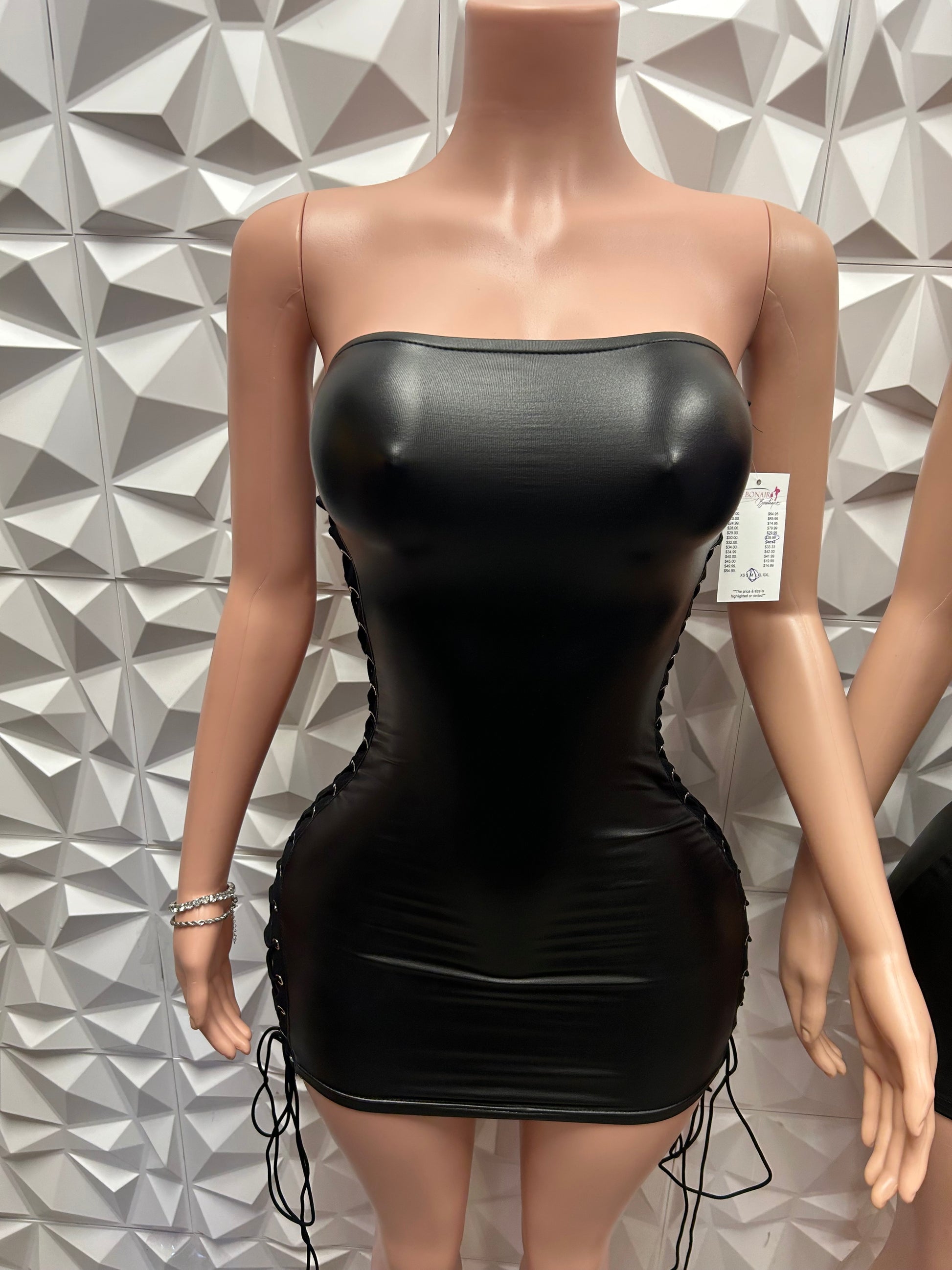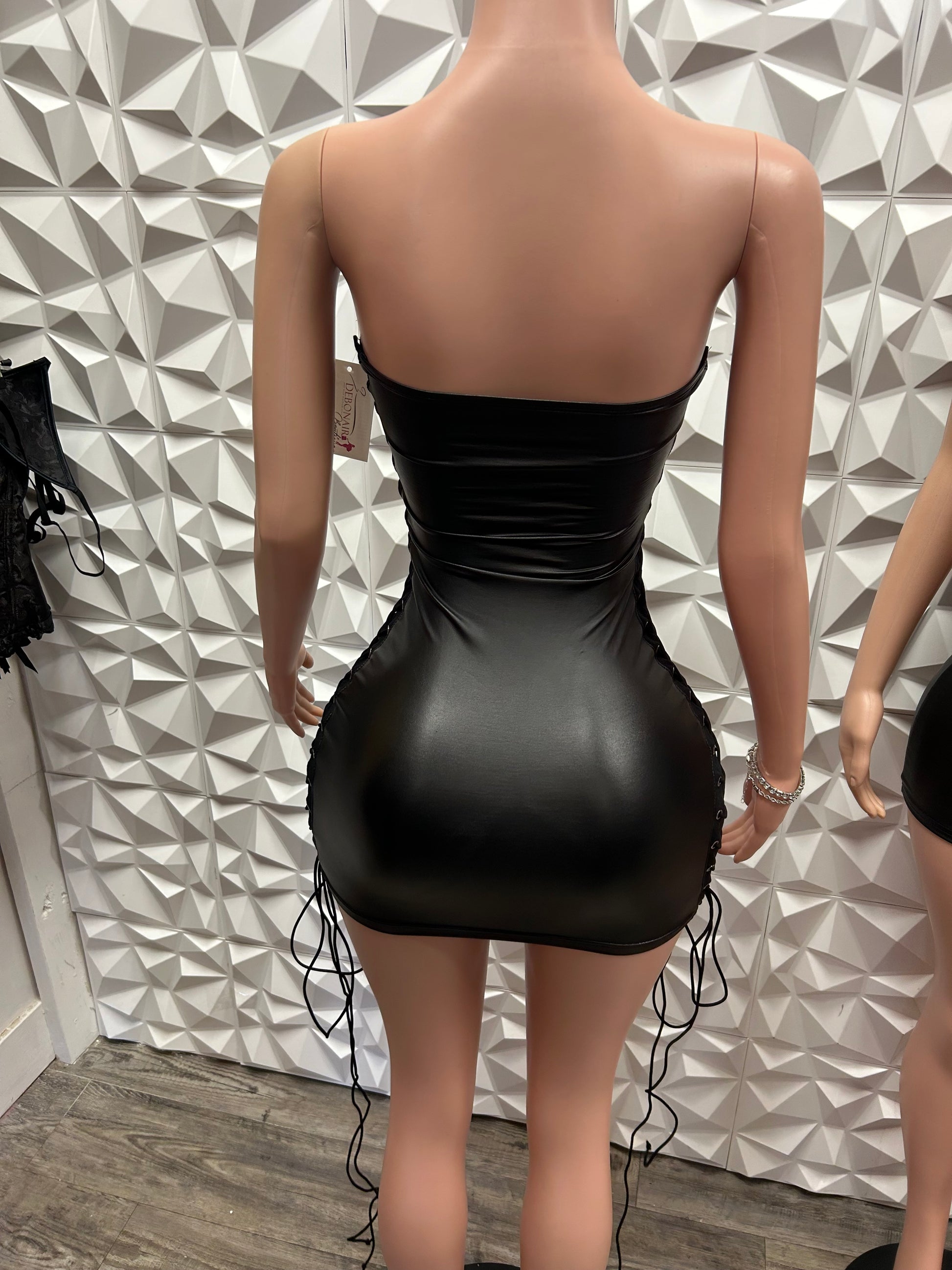 Unique side tie up leather dress with room for adjustment