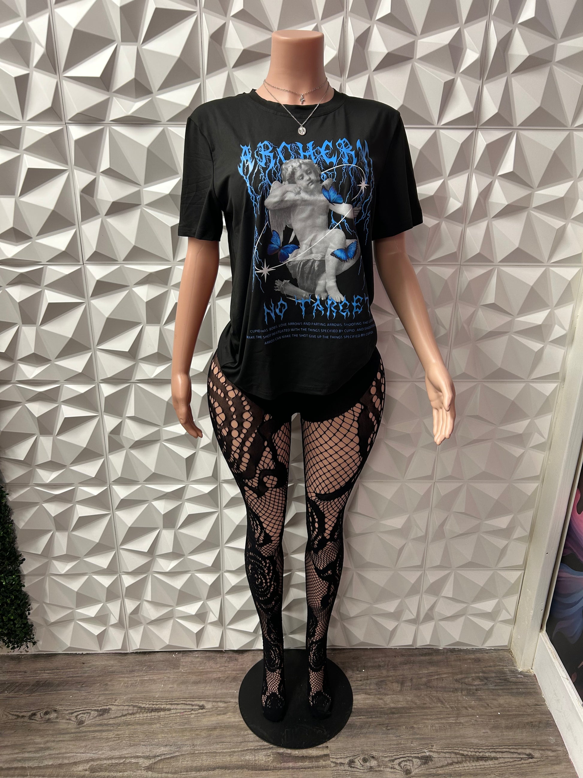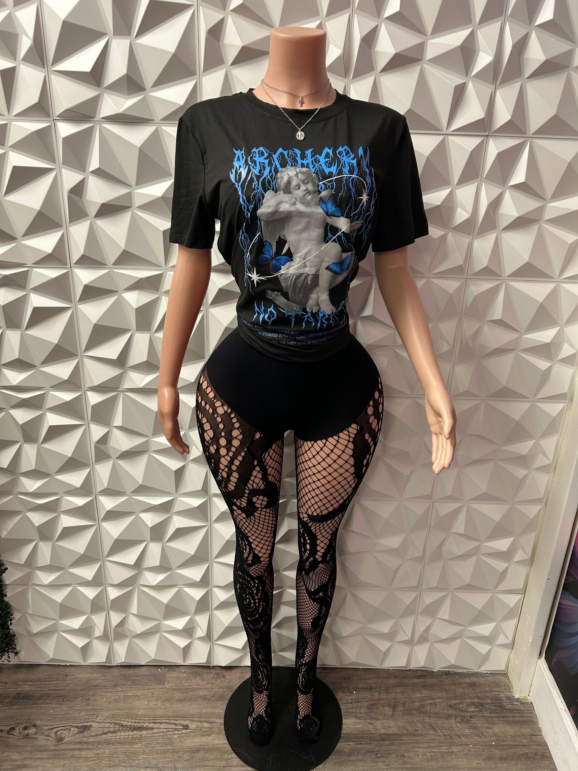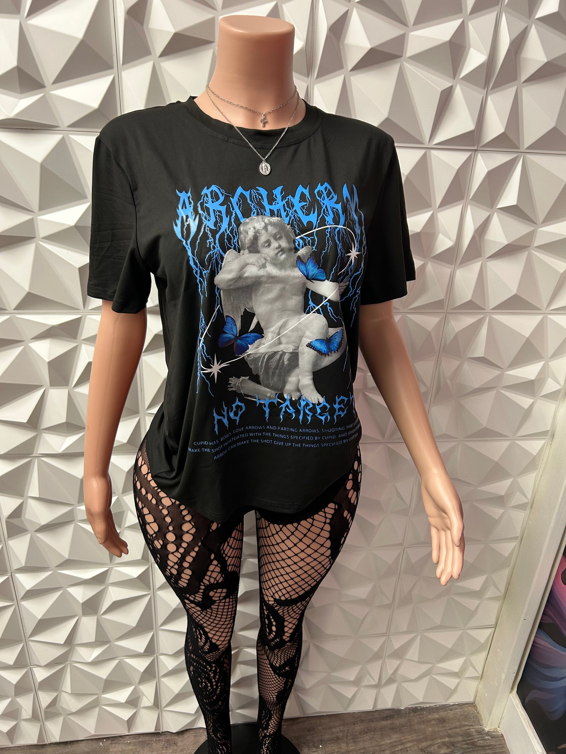 Cute trendy graphic tee, runs oversized. Top can be tied in the back for tighter look
