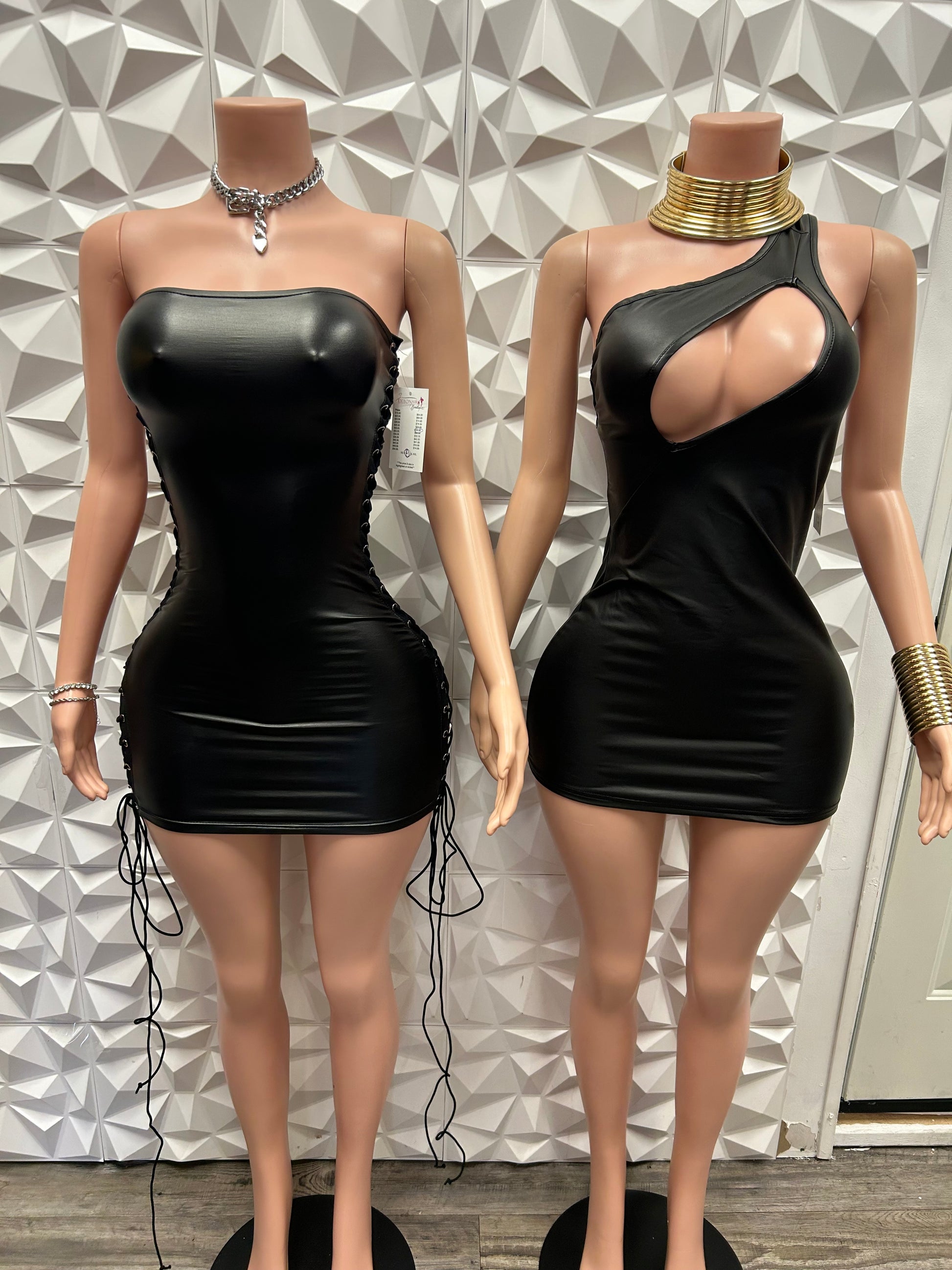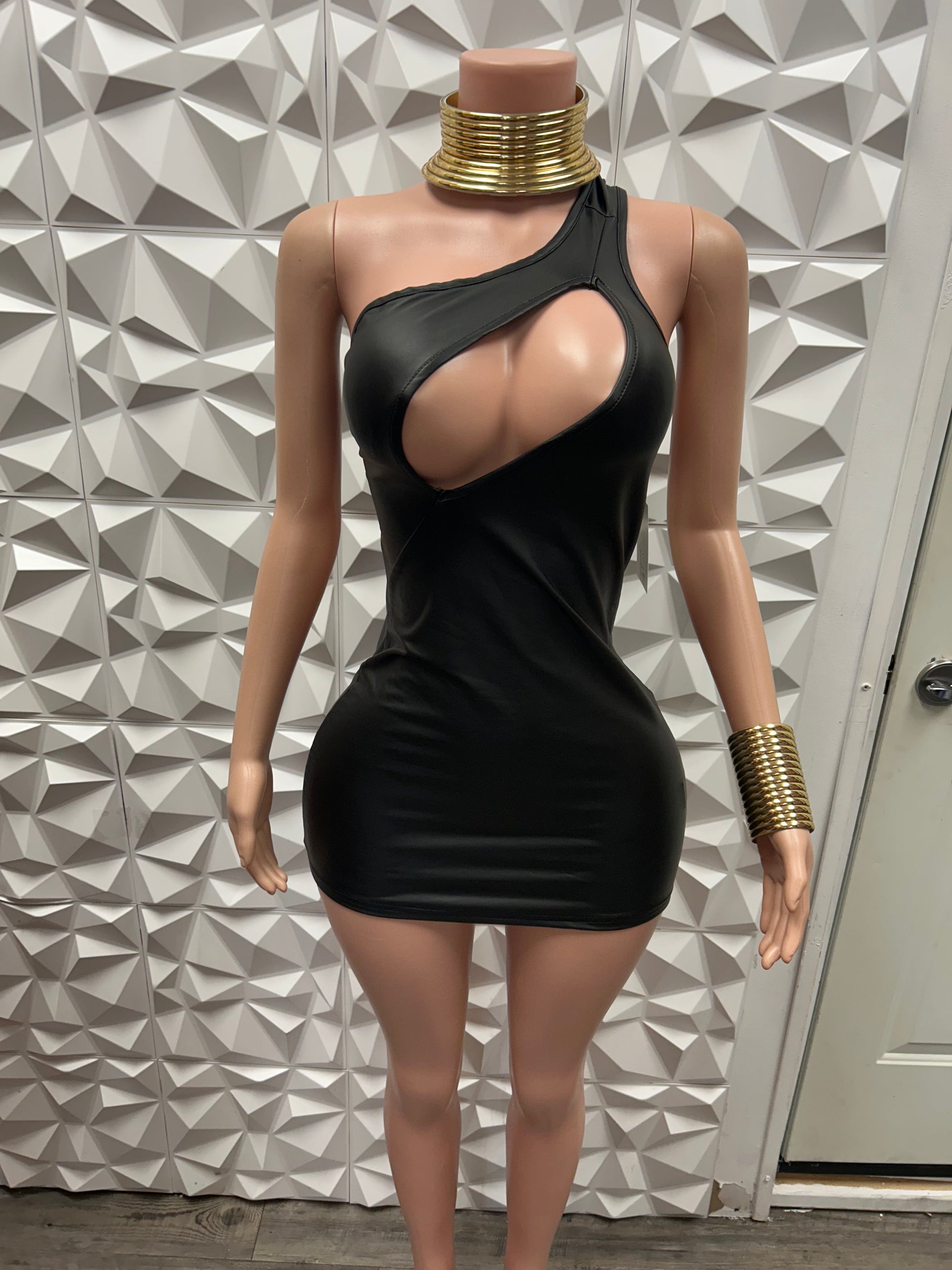 Open front cut bodycon leather dress with unique back out